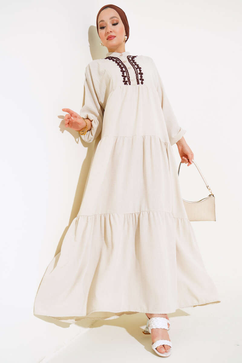 çok güzel çok beğendim gerçekten,efil efil bir etek dökümlü astarlı olması harika kendi bedeninzi alabilirsiniz