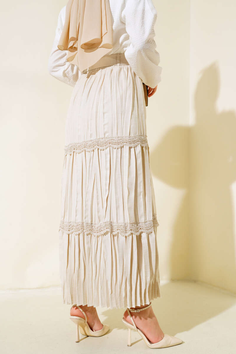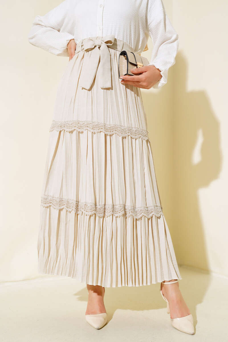 Bağlama Detaylı Scuba Etek Bej