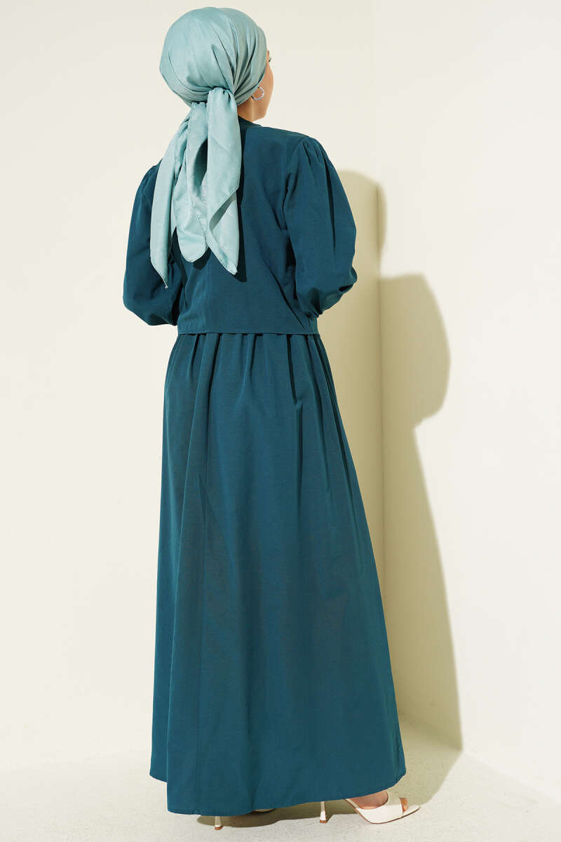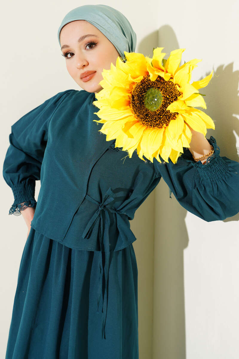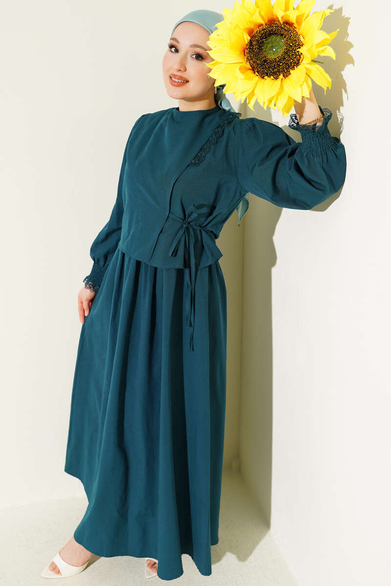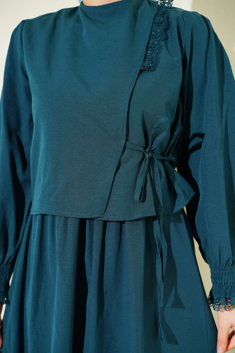 Dantel Detaylı Poplin Jile Elbise Zümrüt