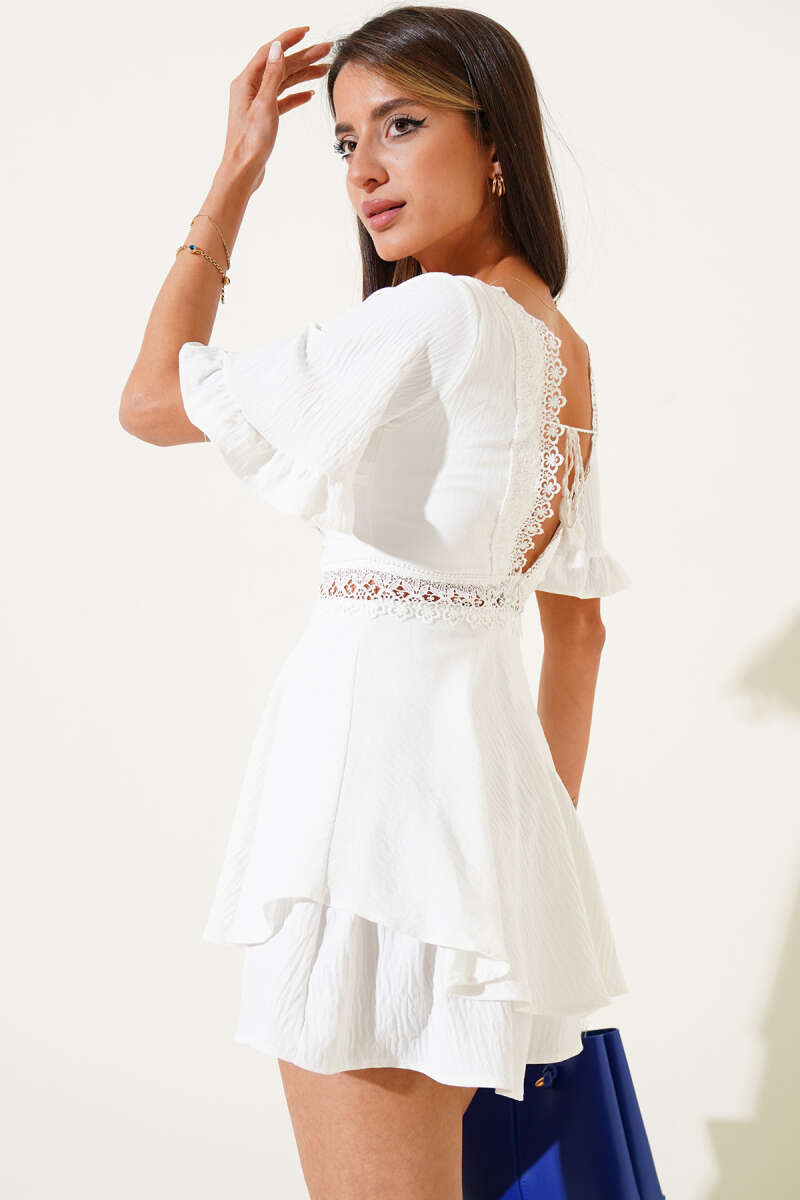 Dantel Detaylı Tulum Elbise Ekru
