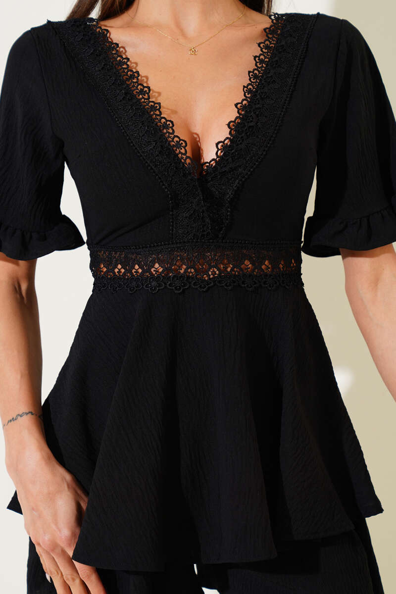Kemerli Dar Paça Kumaş Pantolon Siyah