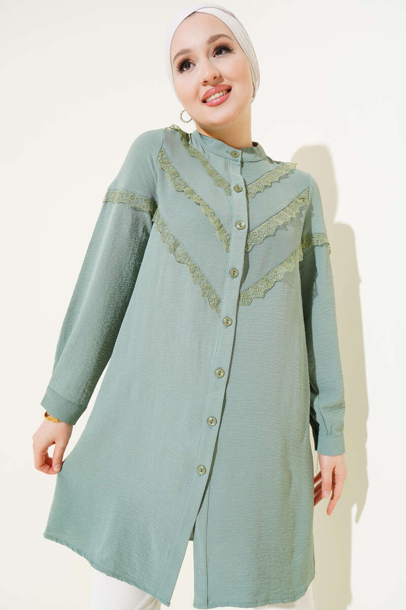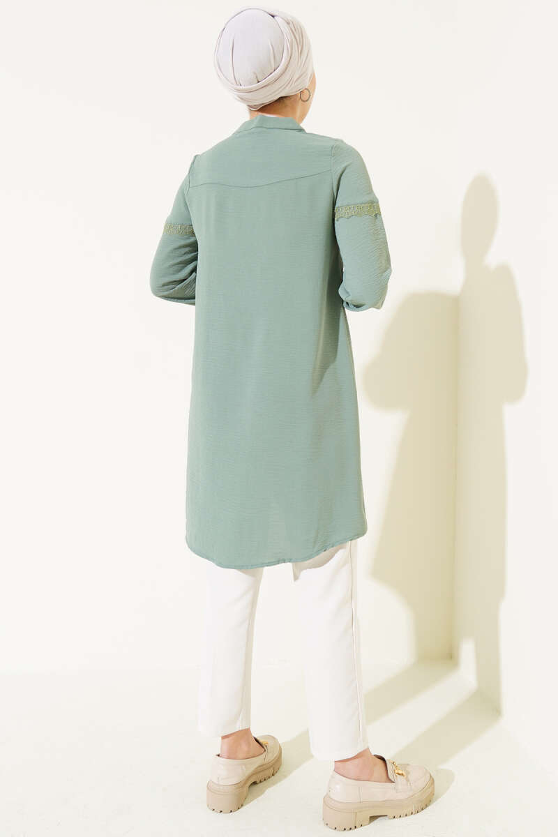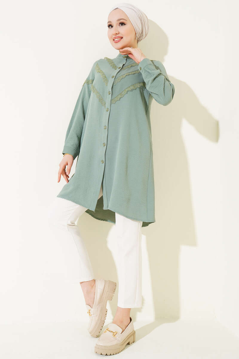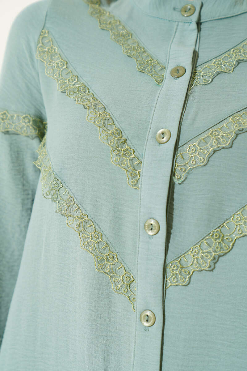 Çift Yaka İp Kuşaklı Gömlek Çağla Yeşili