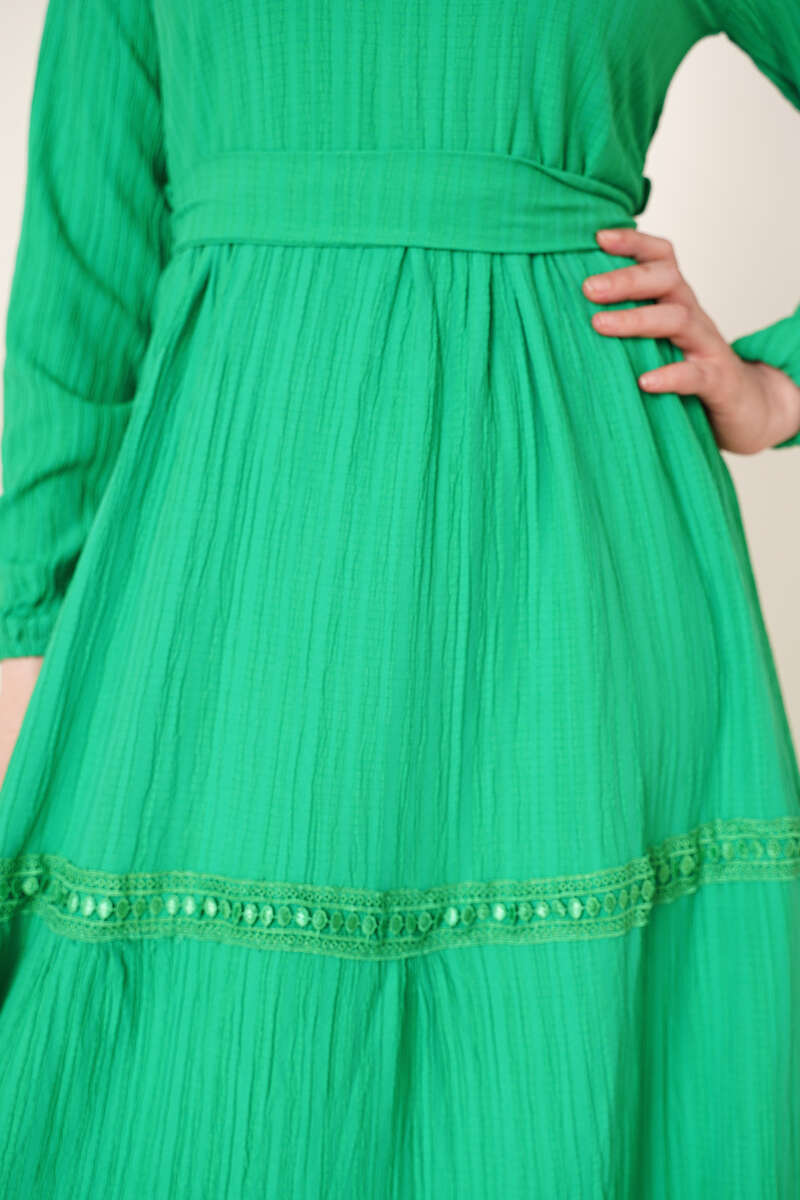 Dantel Süslemeli Kuşaklı Elbise Benetton