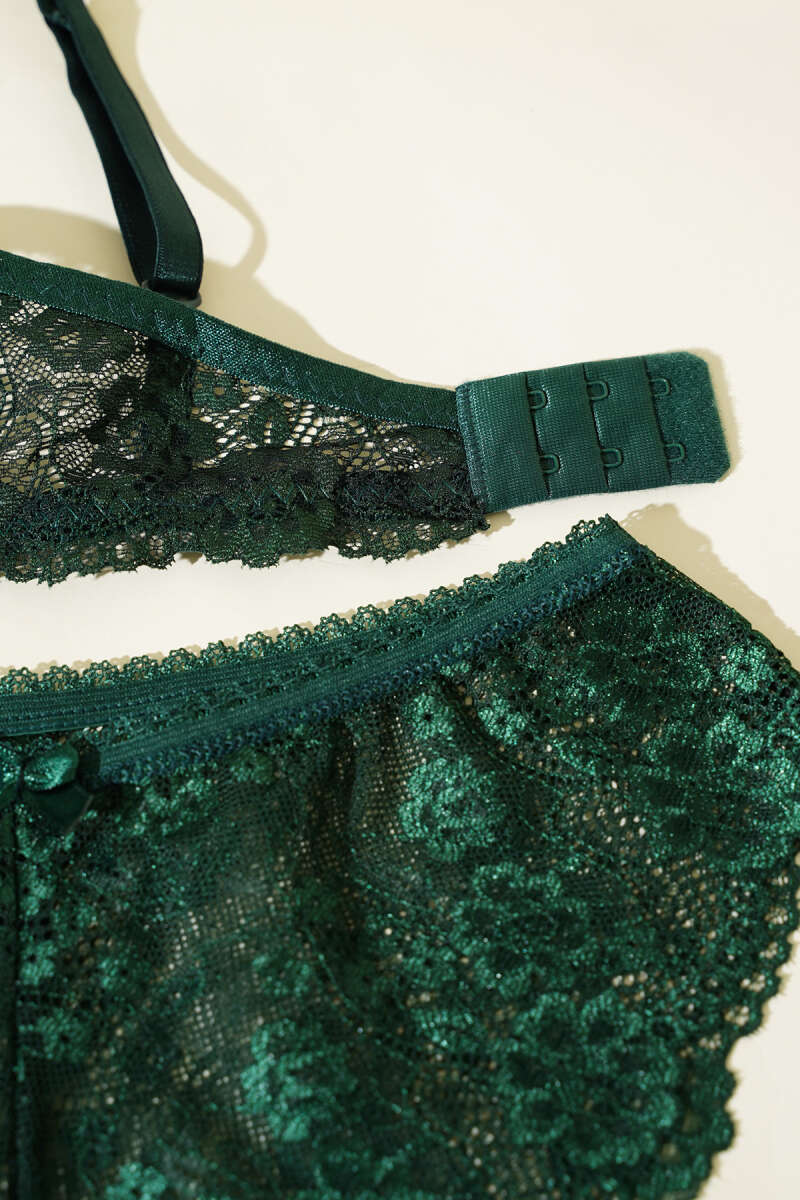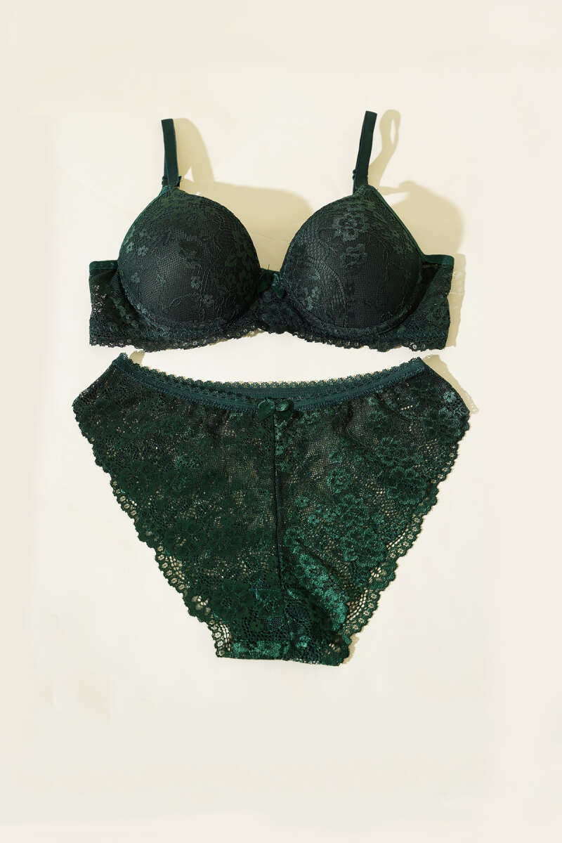 Dantelli Destekli Sütyen Takım Zümrüt Yeşili