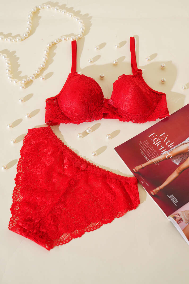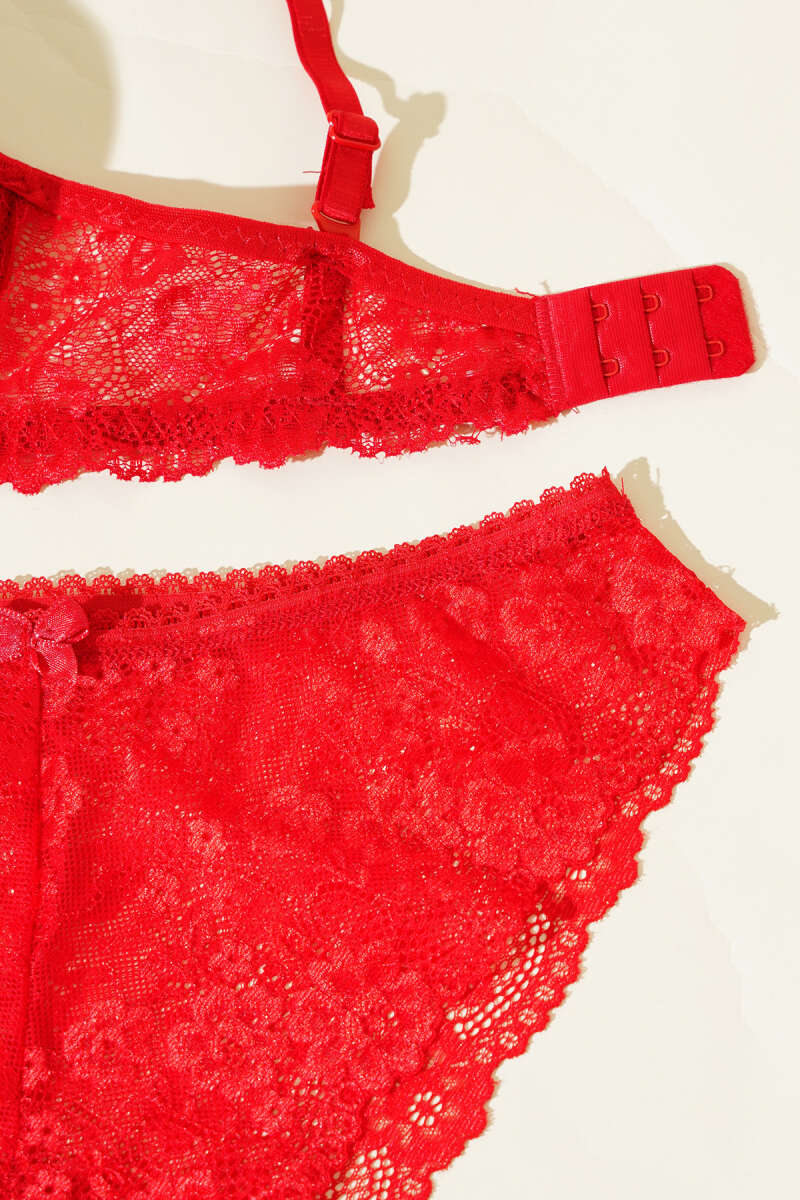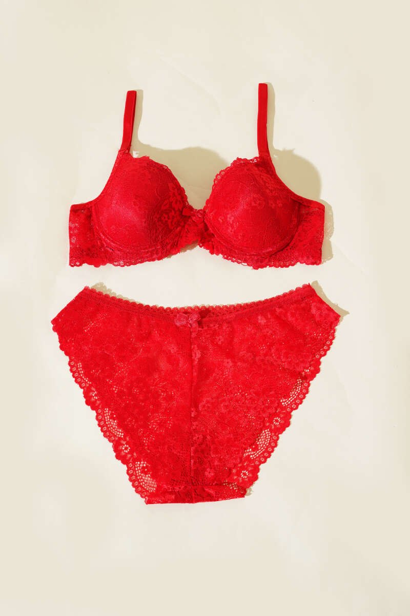 Dantelli Desteksiz Sütyen Takım Kırmızı