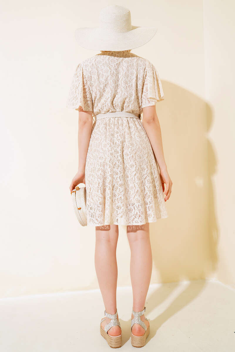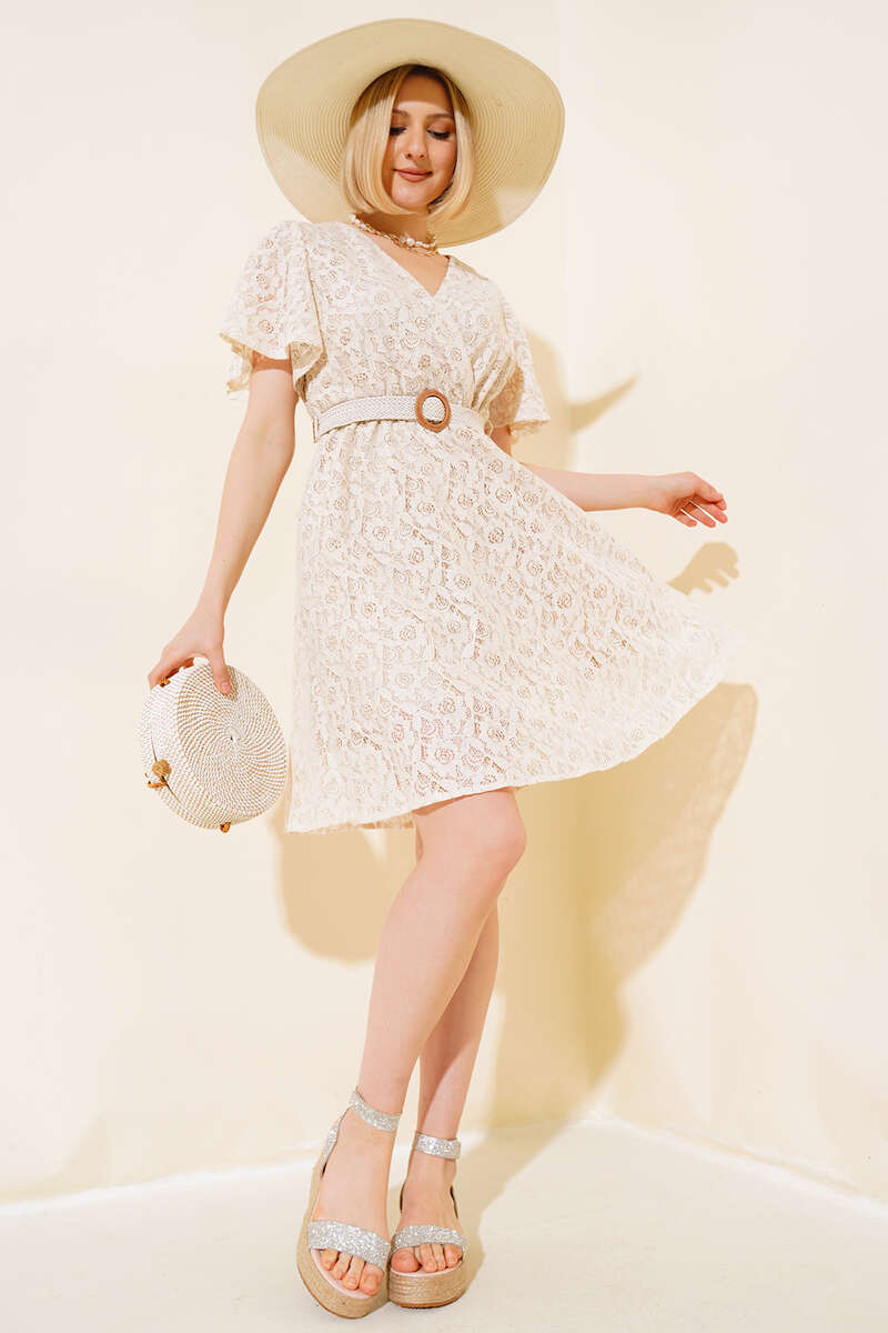Yeni sezon elbise modelimiz sizlerle beraber. Elbisemiz beli lastiklidir. İki adet kemer köprüsü olup, kemeri vardır. Kruvaze yakadır. Kısa kolludur. Astarlıdır. Şık ve zarif elbise modelimizi çok seveceksiniz.