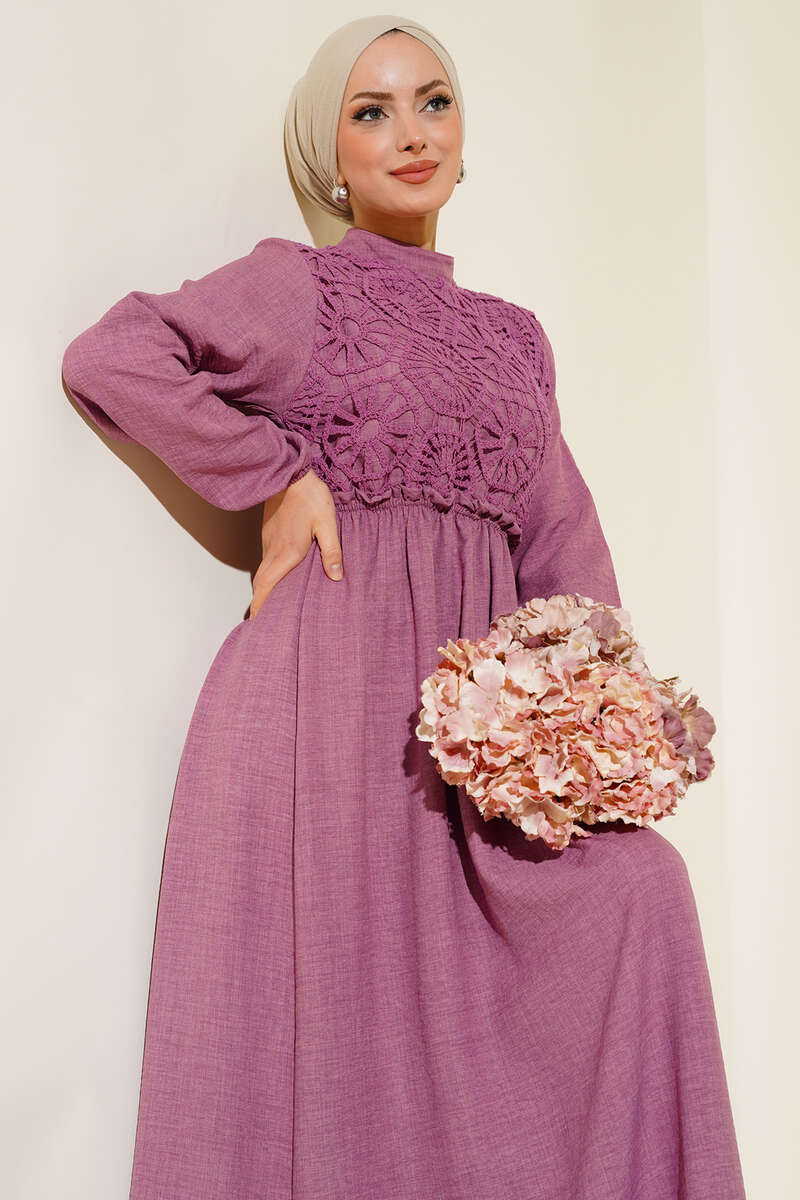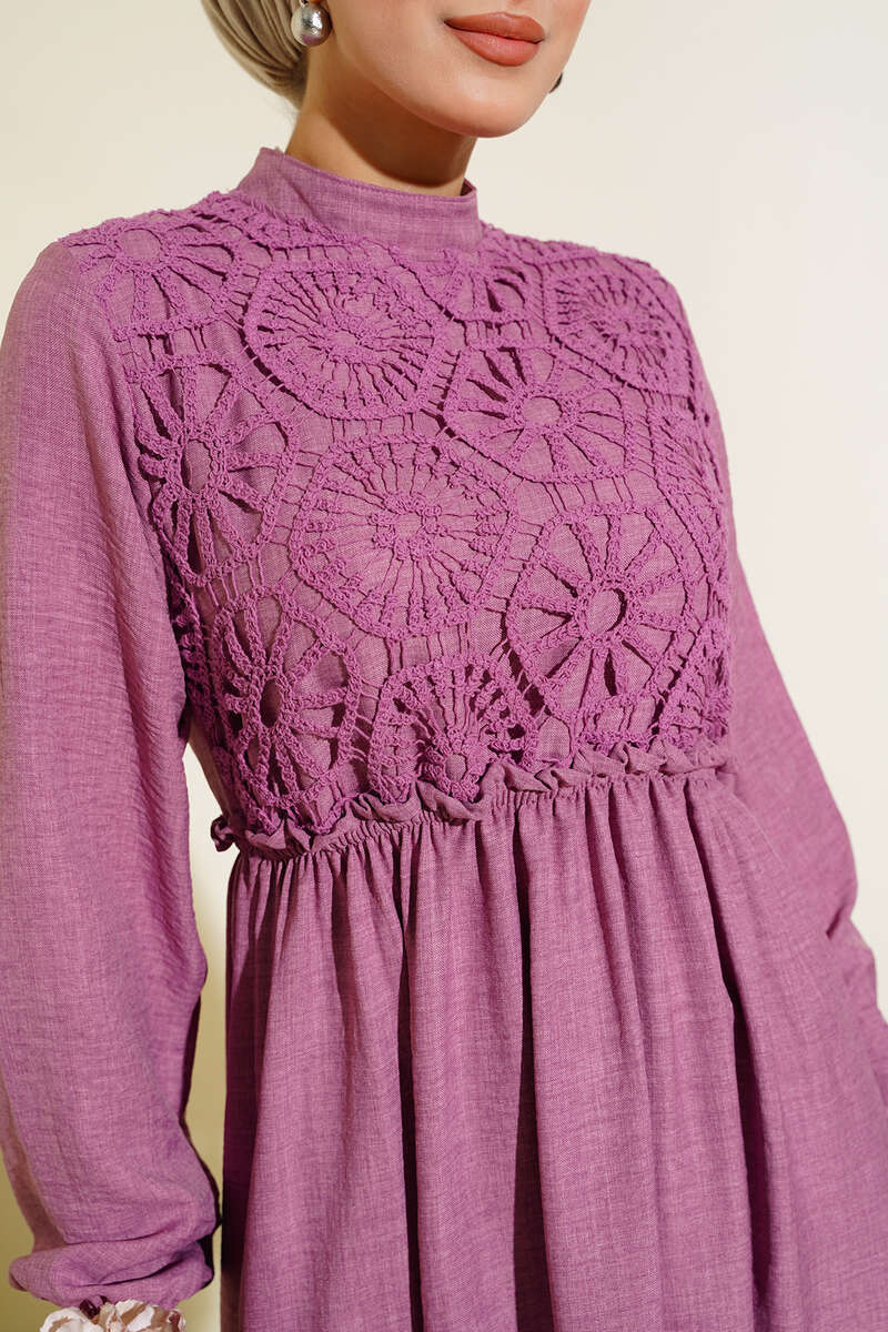 Yeni sezon elbisemiz hem şık hem rahat bir görünüm sunmaktadır. Elbisemizin önü dantel detaylarıyla süslü olup. bel kısmı fırfırlıdır. Kol bilekleri lastiklidir. Elbisemiz dik yaka olup, sırt kısmı fermuarlıdır. Renk seçenekleriyle Dolabınızda yerini beklemektedir.