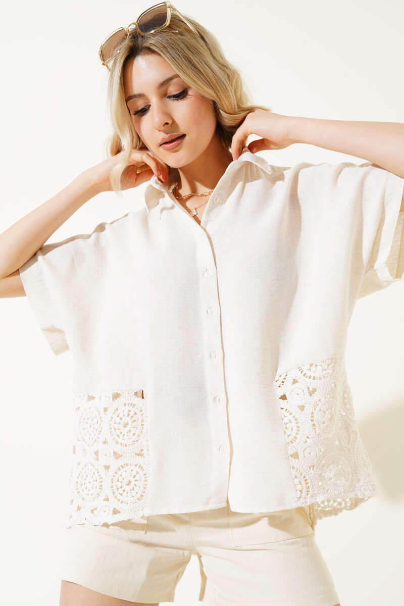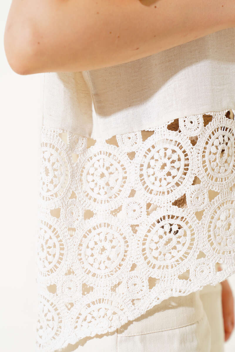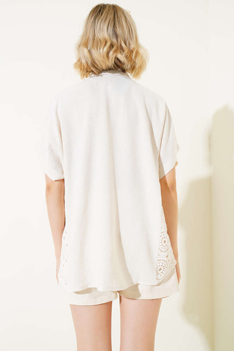Örgü Detaylı Düğmeli Triko Hırka Bej