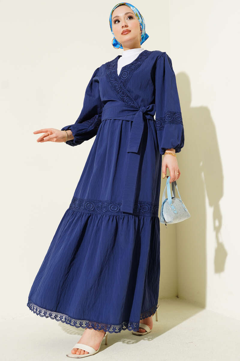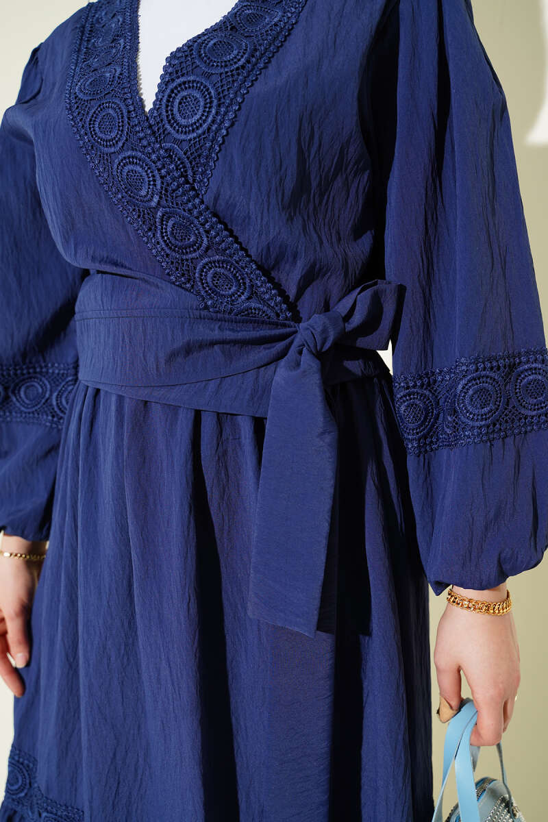 Dantelli Önden Bağlamalı Takım Lacivert