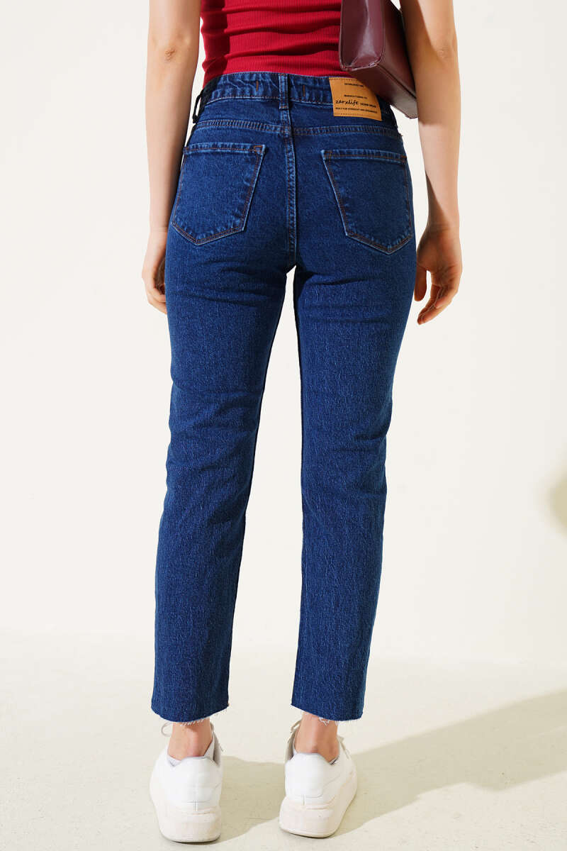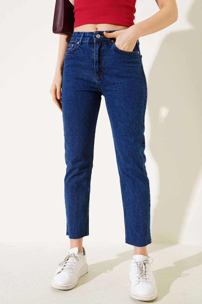 Dar Kesik Paça Mom Kot Pantolon Mavi