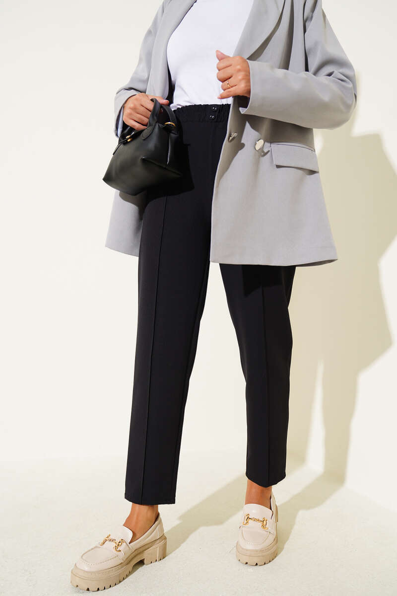Kol Düğmeli Önü Büzgülü Gömlek Siyah