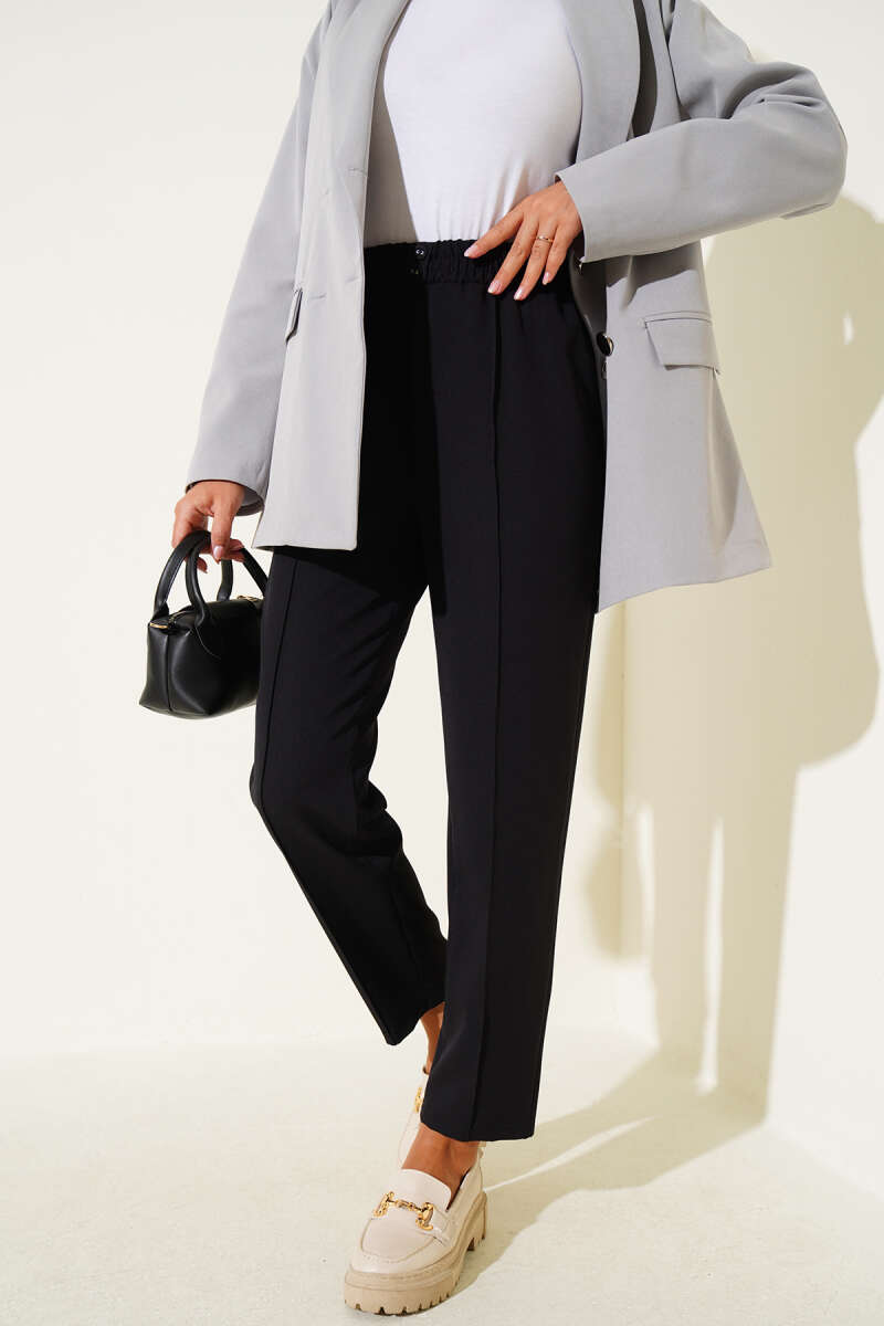 Pötikareli Yanları Büzgü Detay Siyah Tunik