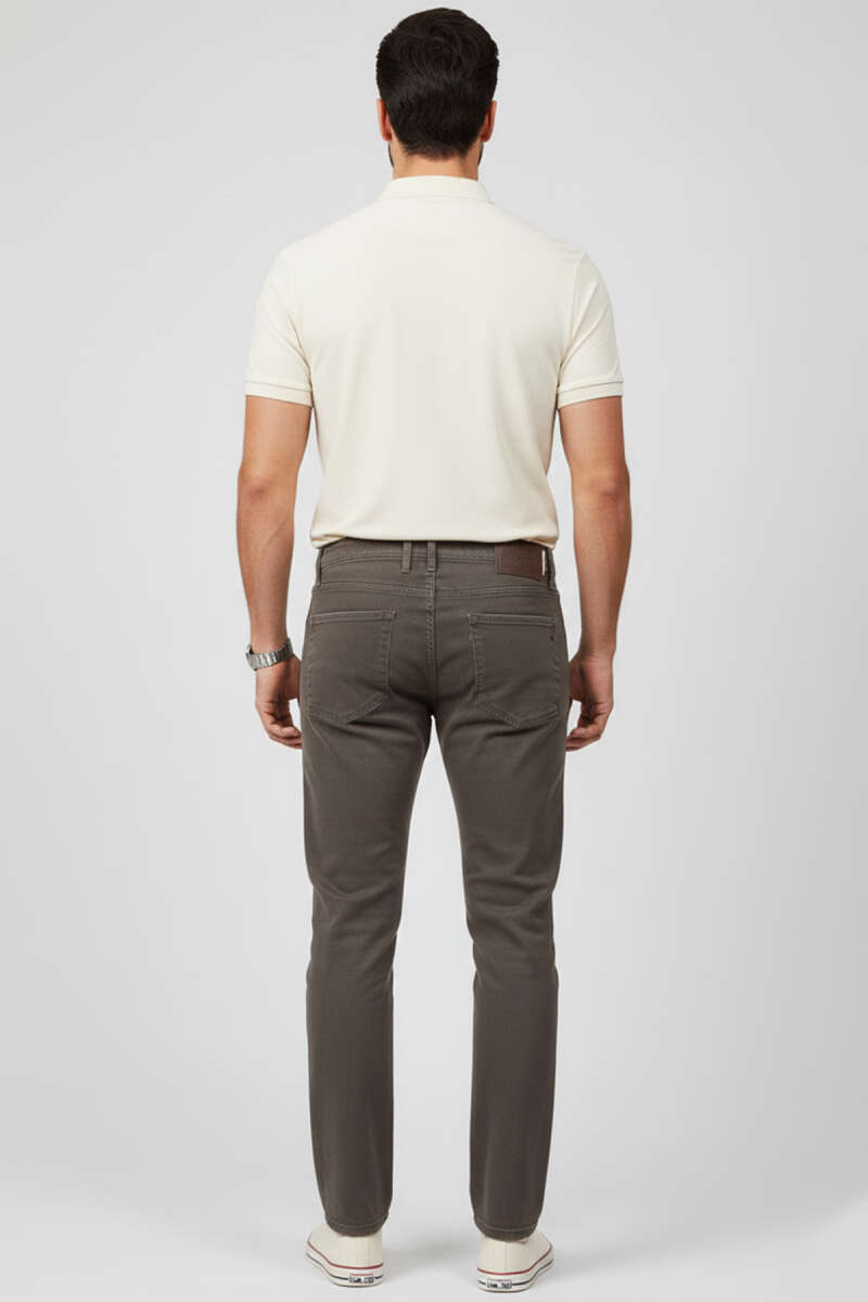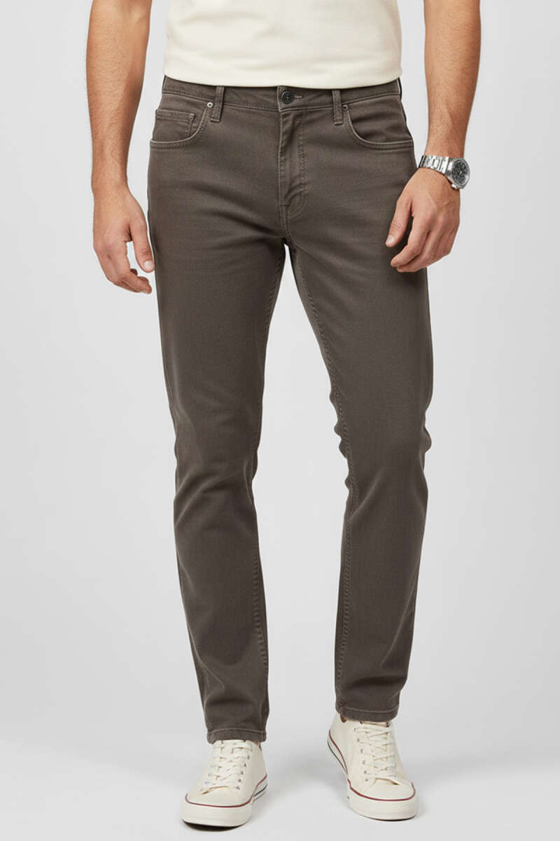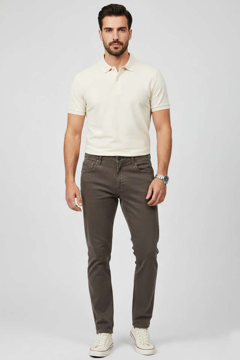 Dar Paça Cepli Düğmeli Erkek Kot Pantolon Haki
