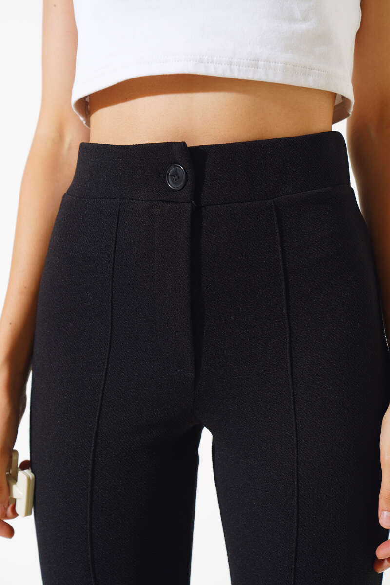 İspanyol Paça Bel Lastikli Dabıl Pantolon Füme