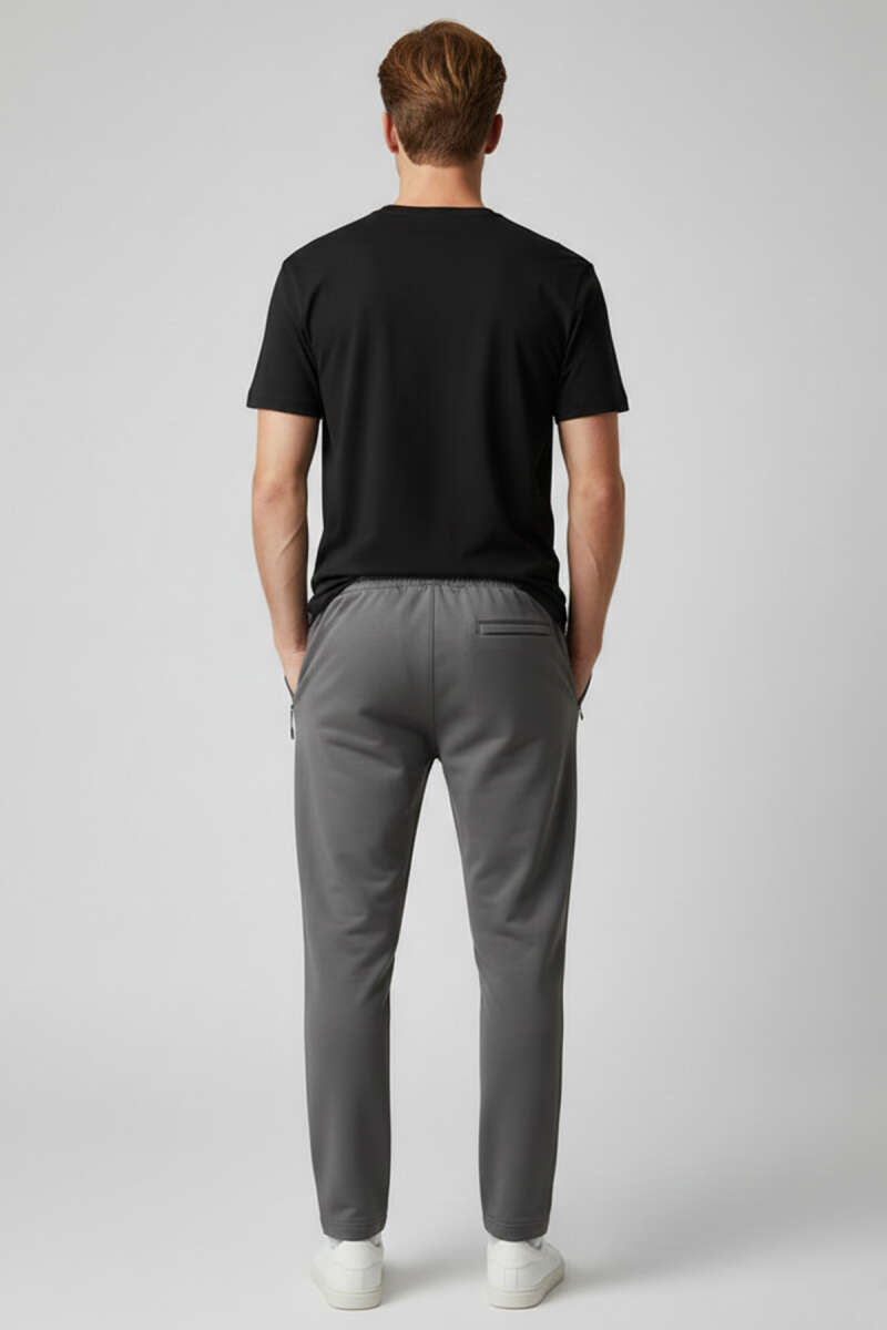 Dar Paça Fermuar Cepli Erkek Eşofman Altı Gri