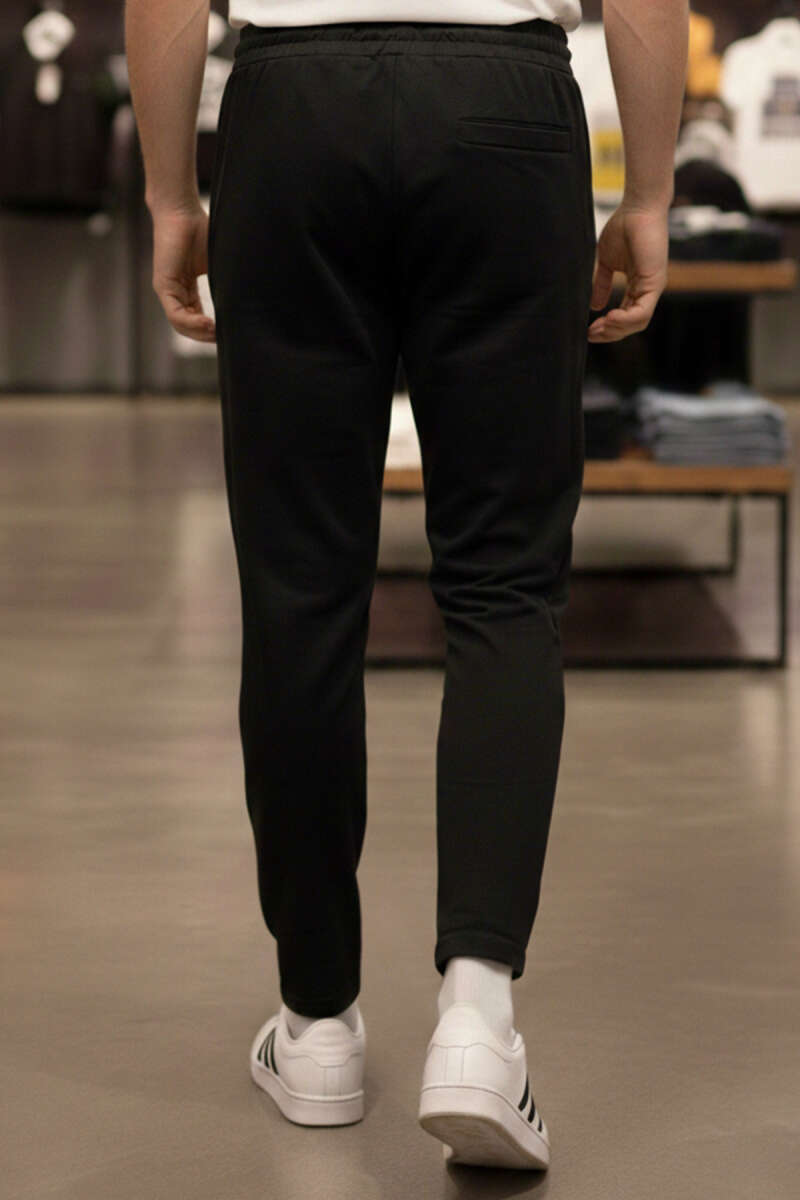 Dar Paça Bel Lastikli Erkek Eşofman Alt Siyah