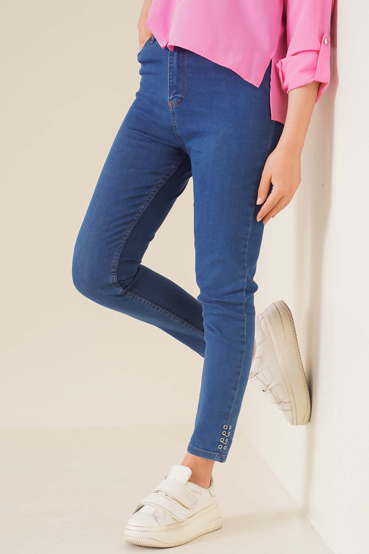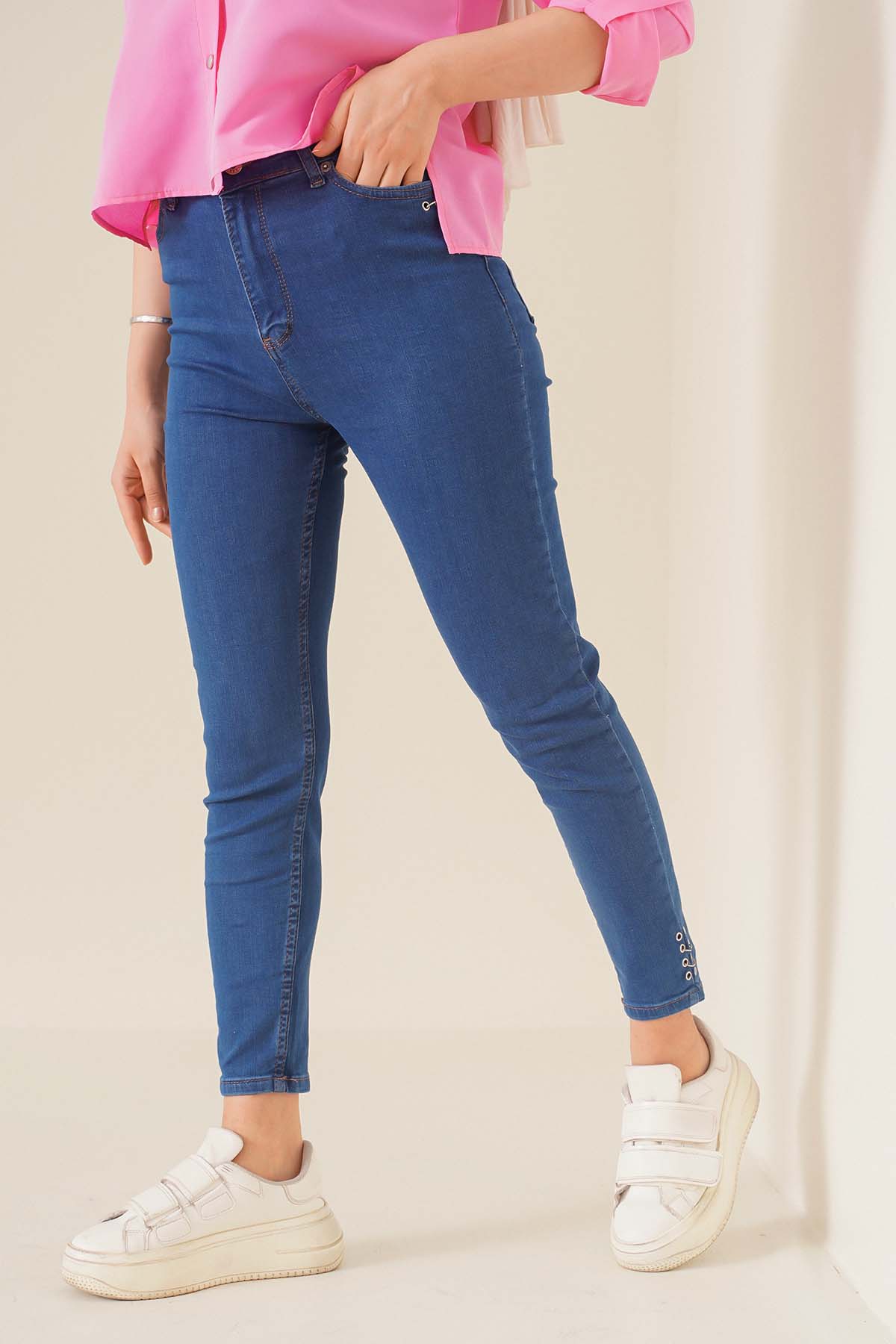 Yeni sezon model pantolonumuz şık tasarıma sahiptir. Tek düğmeli fermuarlıdır. Paçasının ön kısmında dört adet halka detayı bulunmaktadır. İki arkada iki önde cebi vardır. Ekstra olarak sağ cebinde küçük bir cep daha bulunmaktadır.