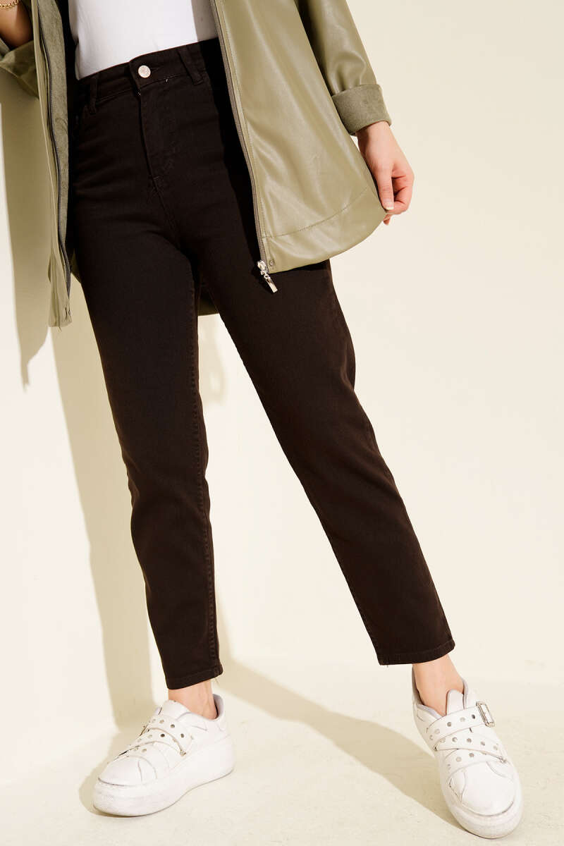 Yan Kemer Tokalı Mom Kot Pantolon Lacivert