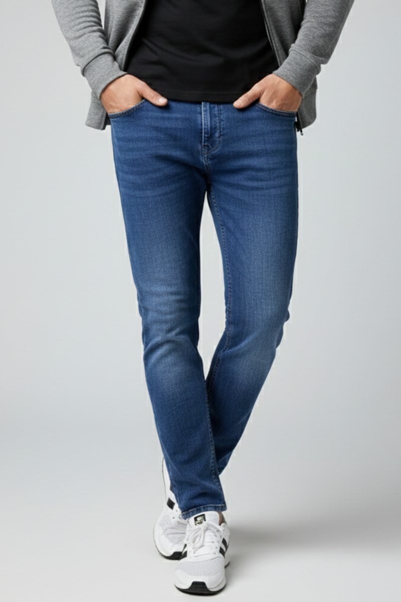 Likralı Düz Dar Paça Erkek Kot Pantolon Mavi