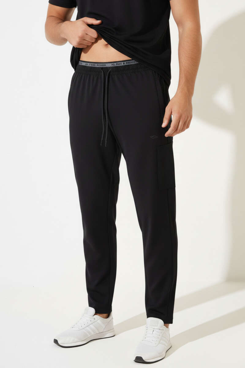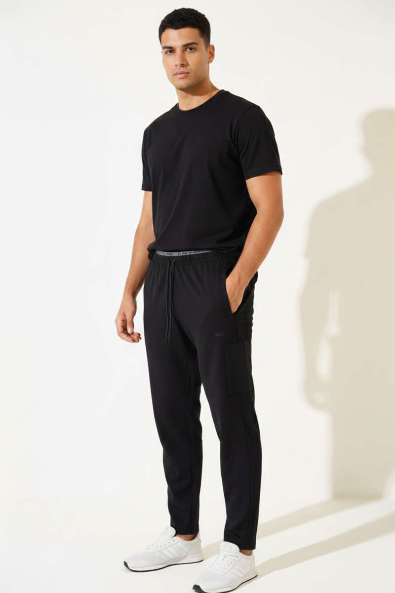Paça Ribanalı Cepli Erkek Eşofman Altı Siyah