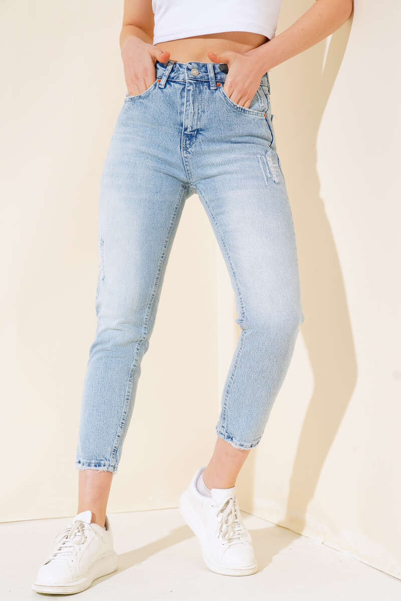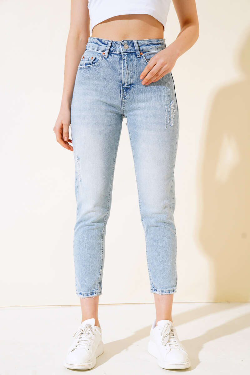 Yeni sezon pantolon modelimiz sizlerle beraber. Kot pantolonumuzun önü yıpratmalıdır. Dar paça modeldir. Dört adet cebi bulunmaktadır. Beş adet kemer köprüsü bulunmaktadır.