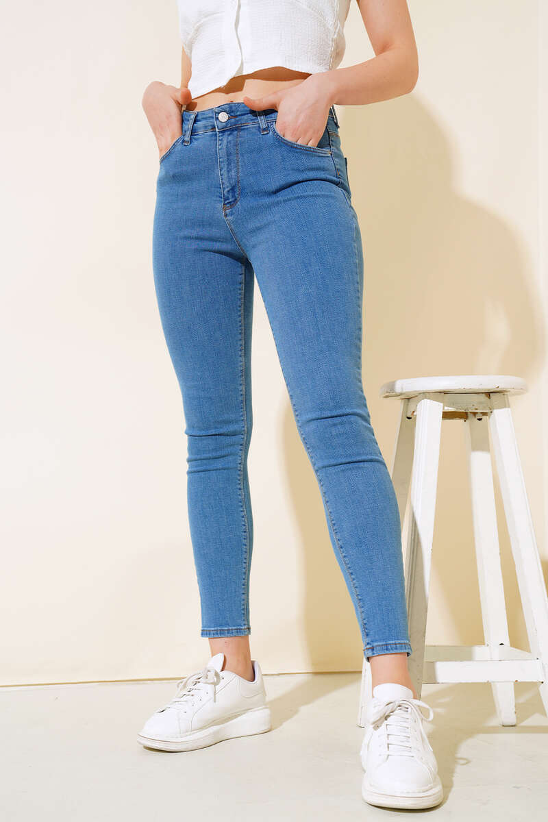 Yeni sezon pantolon modelimiz sizlerle beraber. Yüksek bel pantolonumuzun dört adet cebi bulunmaktadır. Dar paça modeldir. Kombinlerinizin tamamlayıcı parçası olacak olan pantolon modelimiz dolaplarınızda yerlerini beklemektedir.