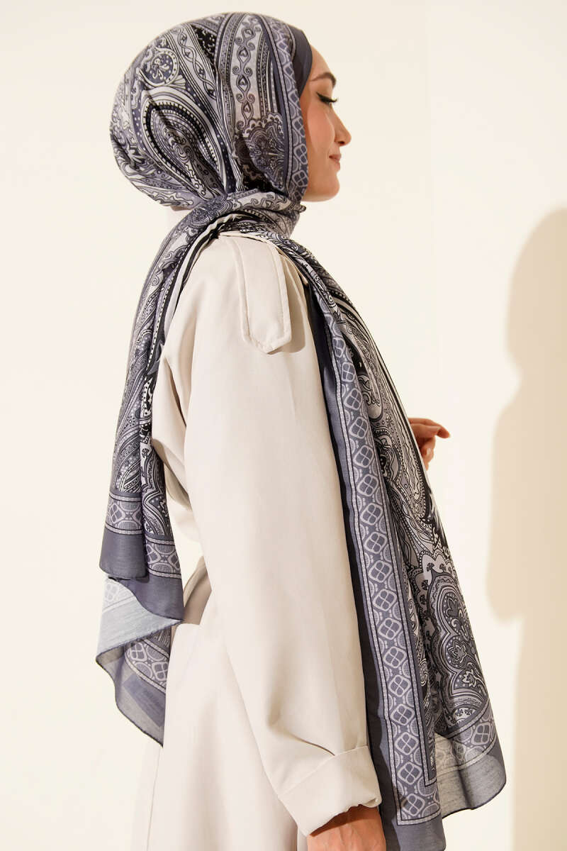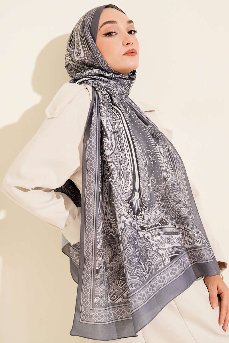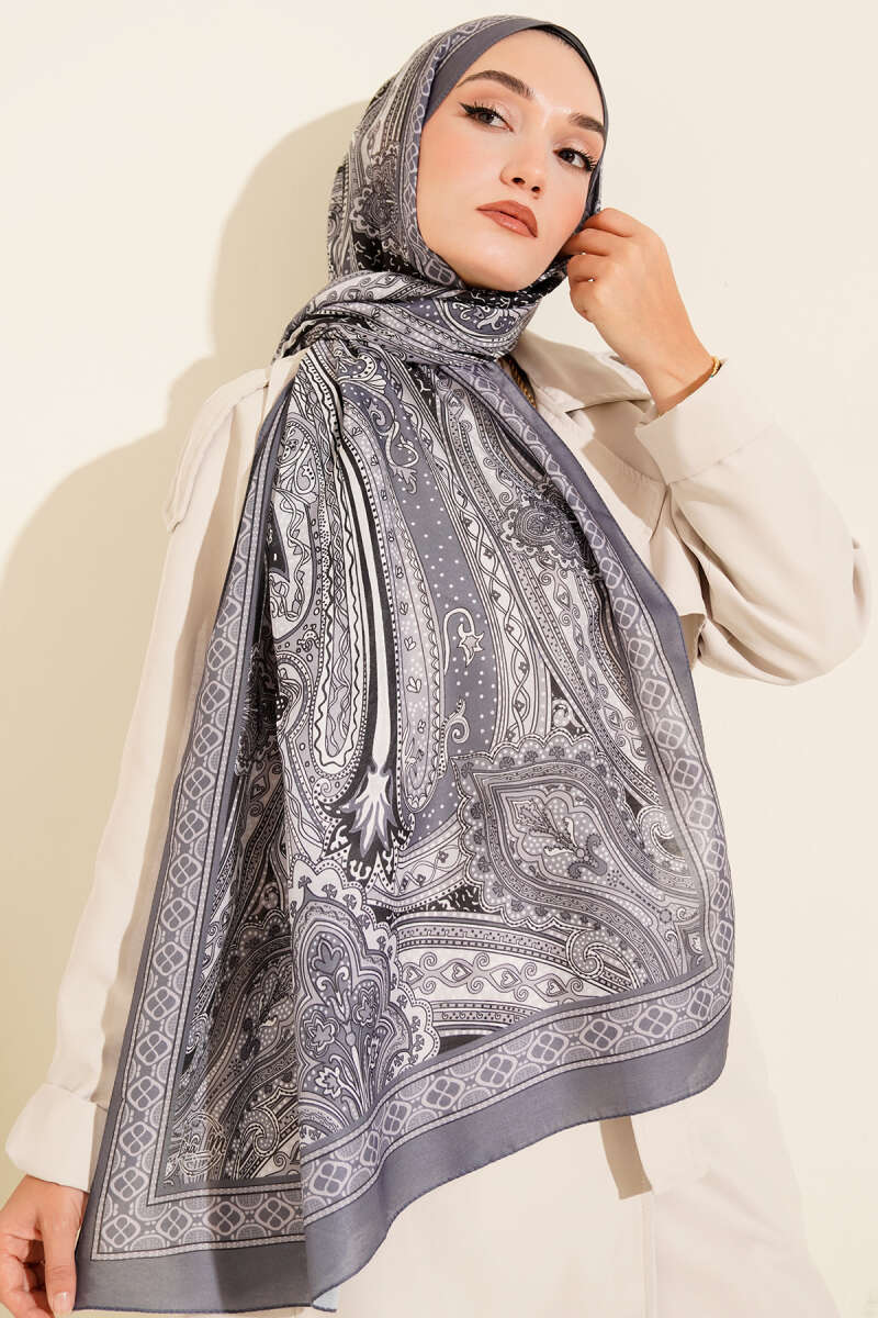 Mini Boncuk Detaylı Eşarp Kayrak Grisi