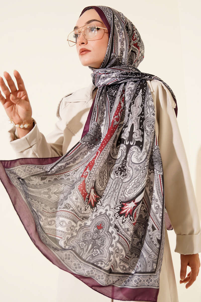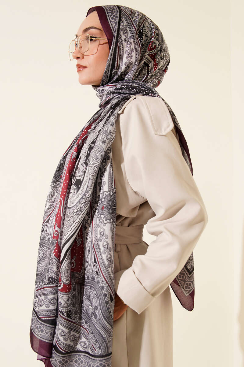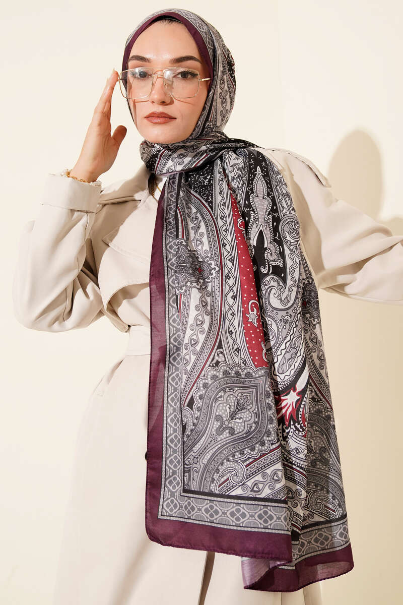 Mini Boncuk Detaylı Eşarp Kayrak Grisi