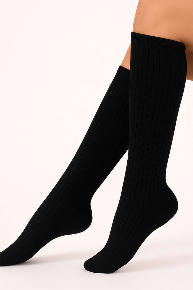 Daymod Rib Fitilli Dizaltı Çorap Siyah