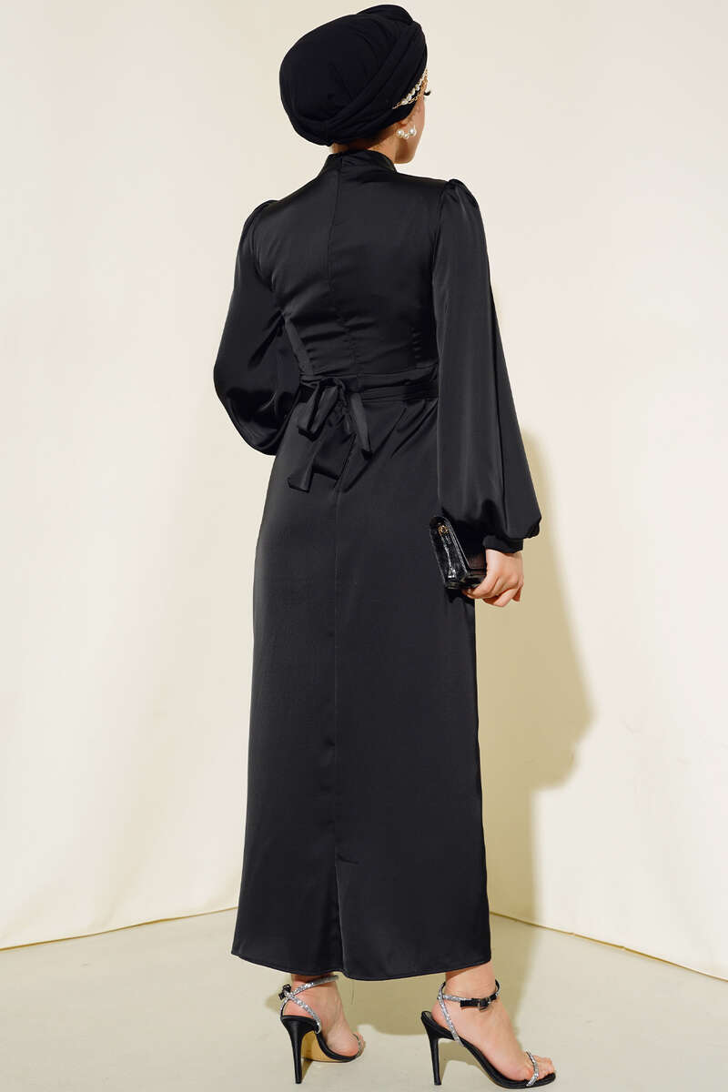 Yeni sezon saten abiyemiz sizlerle beraber. Abiyemizin önü degaje yakadır. Abiyemizin sırtı fermuarlı olup kolaylık sağlamıştır. Kendi kumaşından kuşağı vardır. Abiyemiz hem şık hem zarif oluşuyla özel günlerinizin favorisi olacak. Renk seçenekleri mevcuttur.
