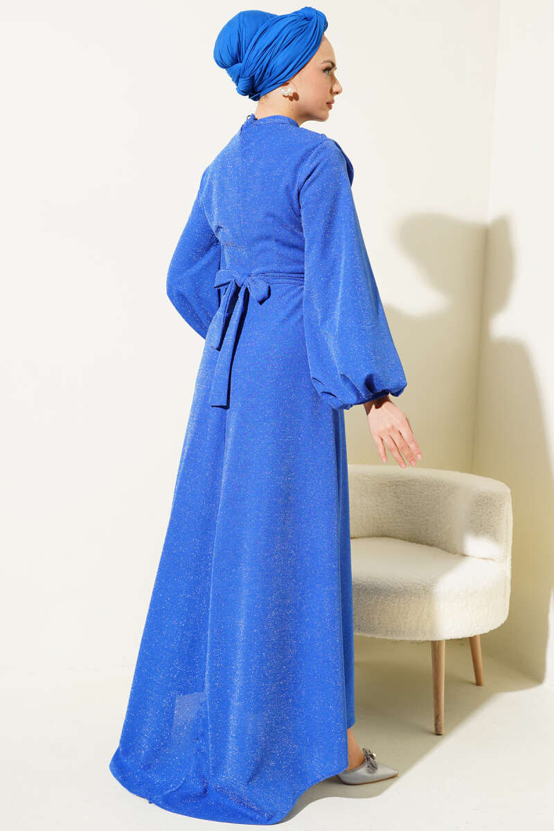 Balıkçı Yaka Balon Kol Triko Tunik Mavi
