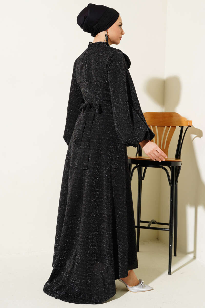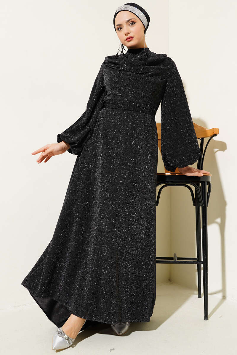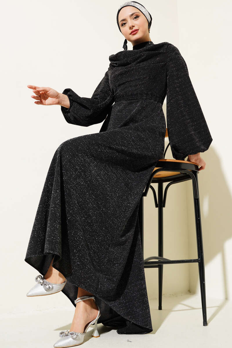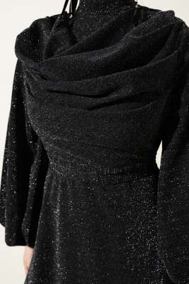Çapraz Drapeli Sandy Elbise Siyah