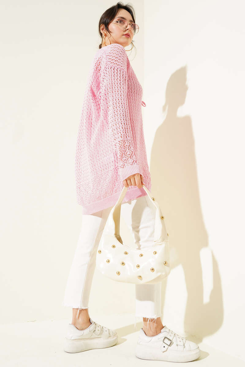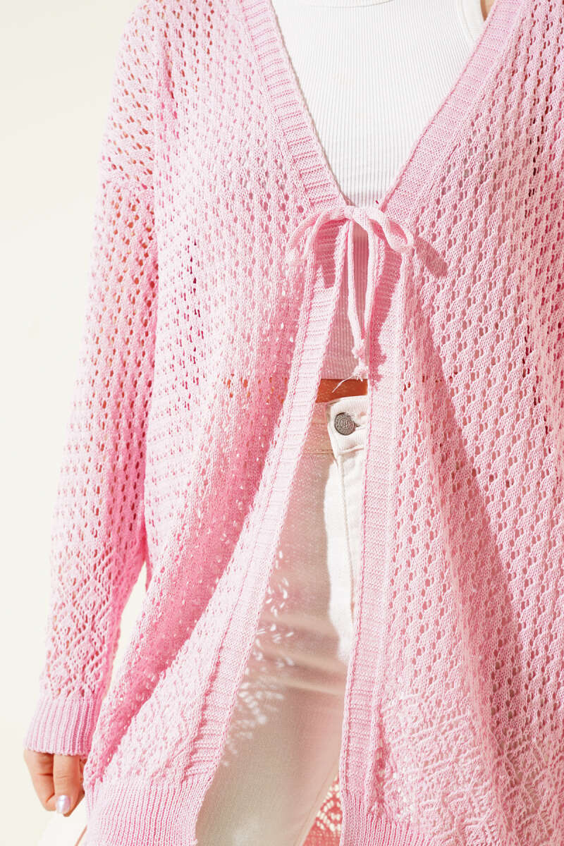 Pirinç Örgü Basic Triko Hırka Nar Çiçeği