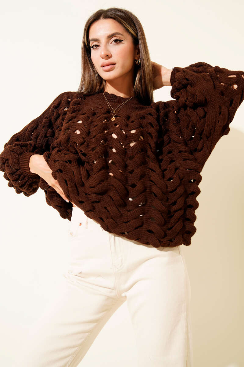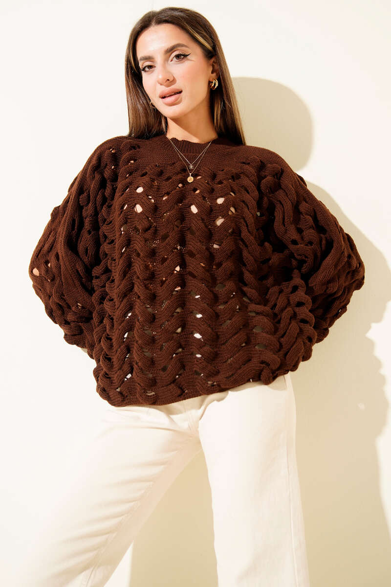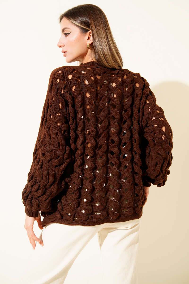 Önü Taş Detaylı Sakallı Elbise Kahve