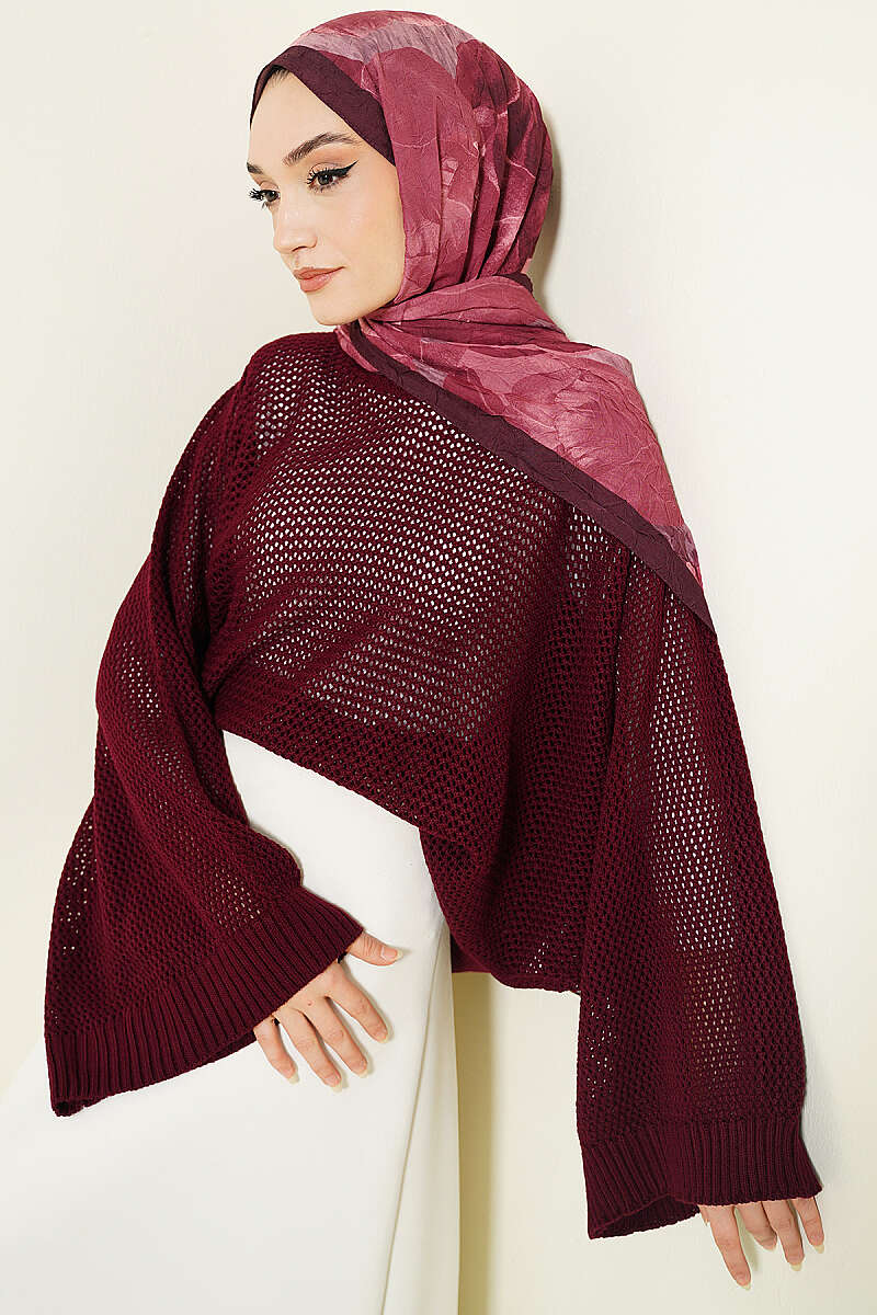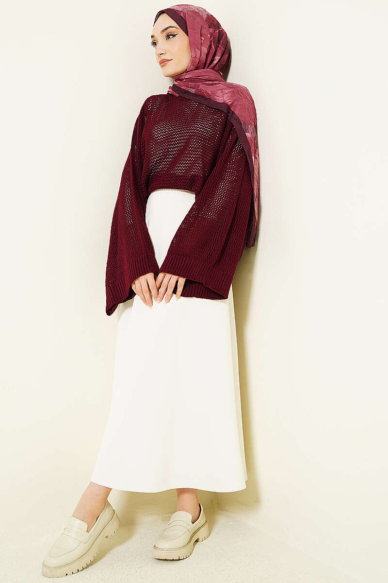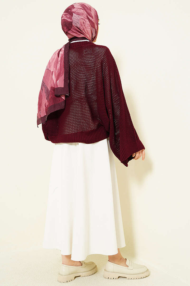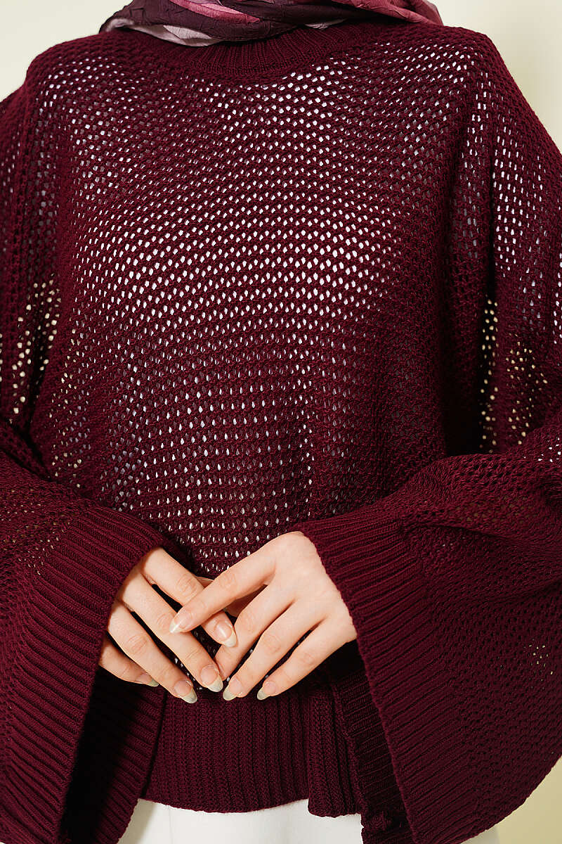 Delikli Yarasa Kol Triko Ajur Kazak Bordo