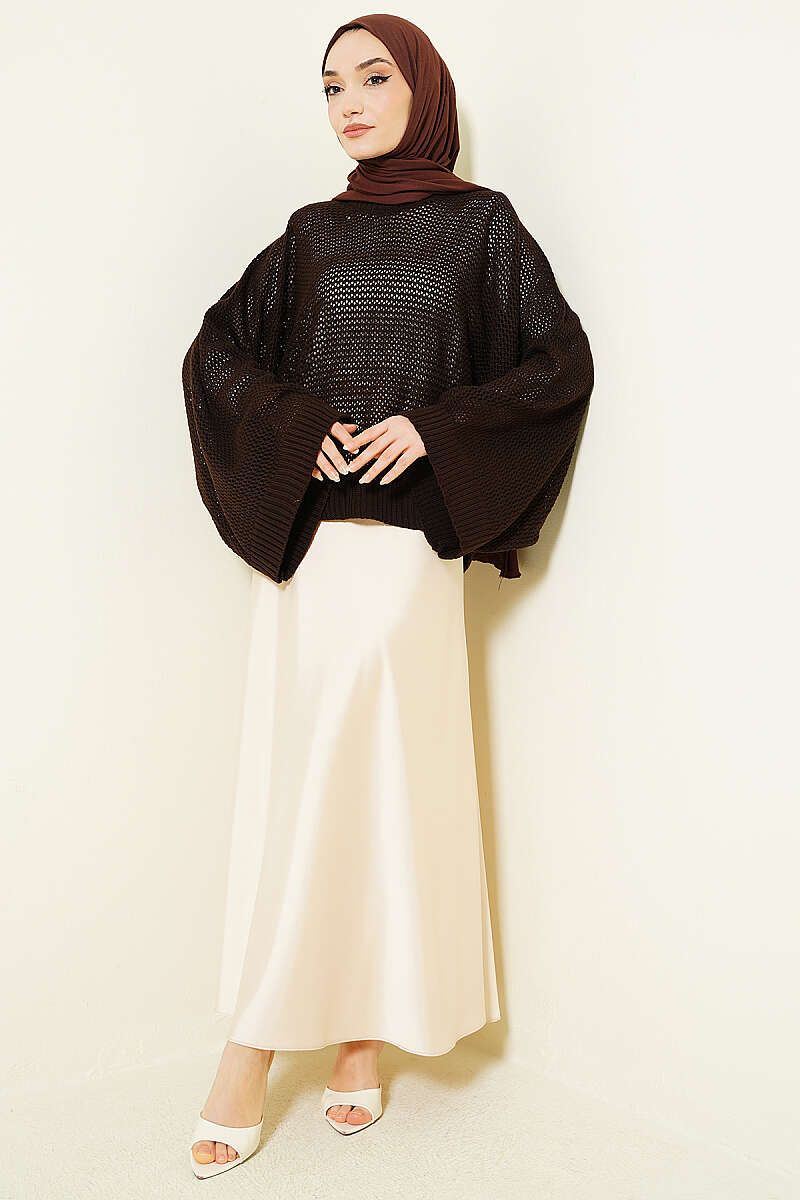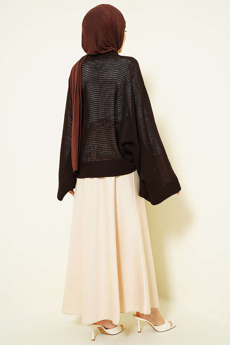 Yarasa Kol Triko Ajur Kazak Acı Kahve