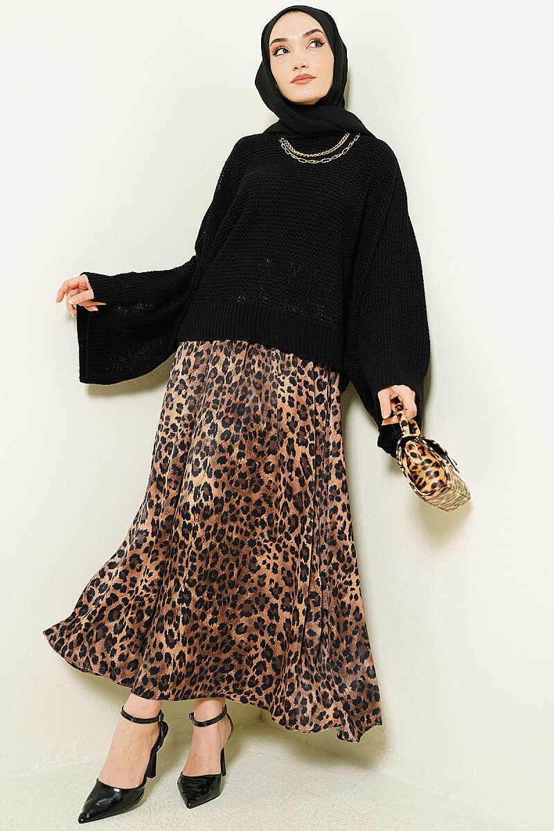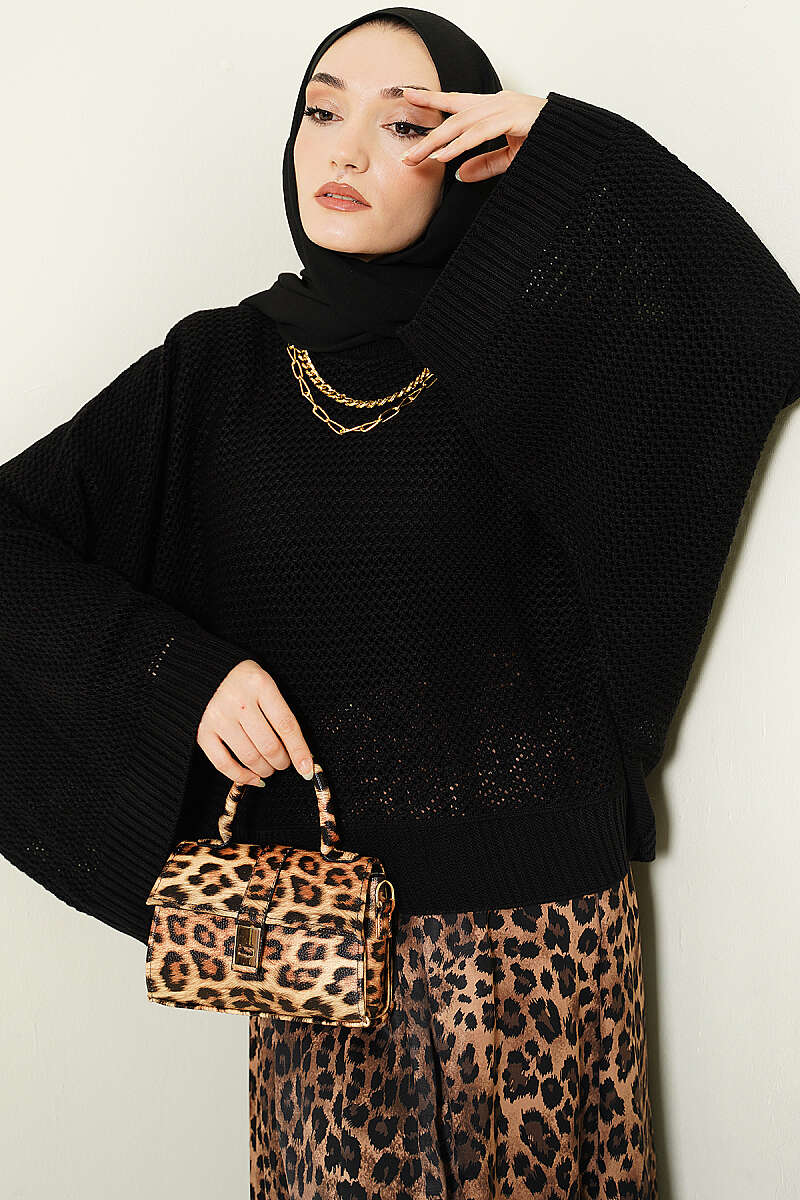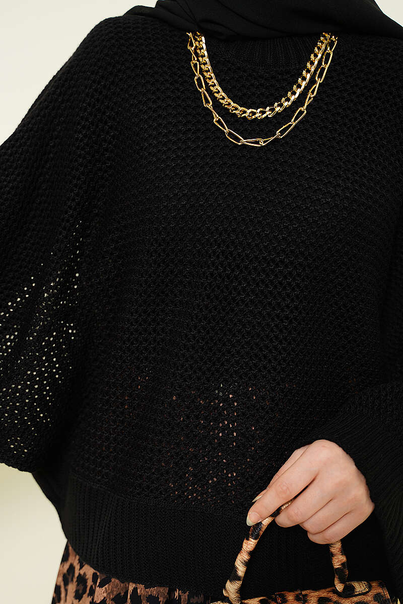 Delikli Yarasa Kol Triko Ajur Kazak Siyah
