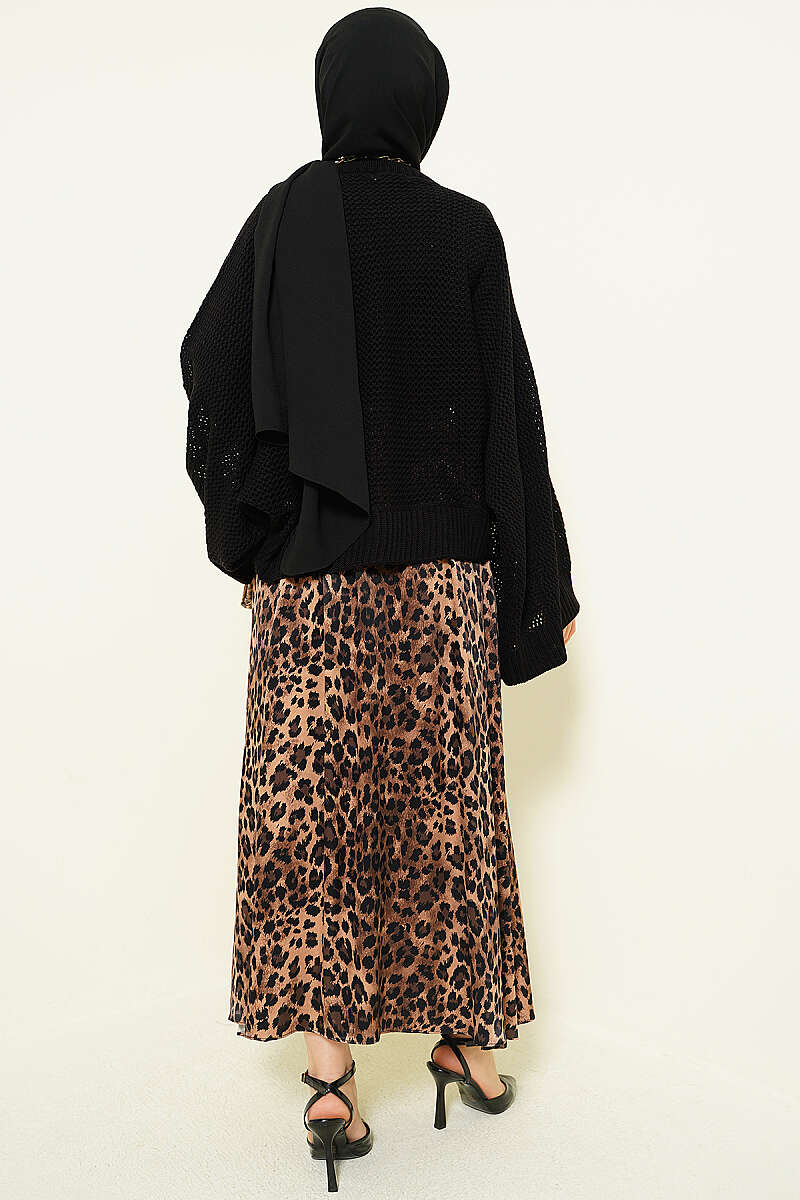 Delikli Yarasa Kol Triko Ajur Kazak Kahve