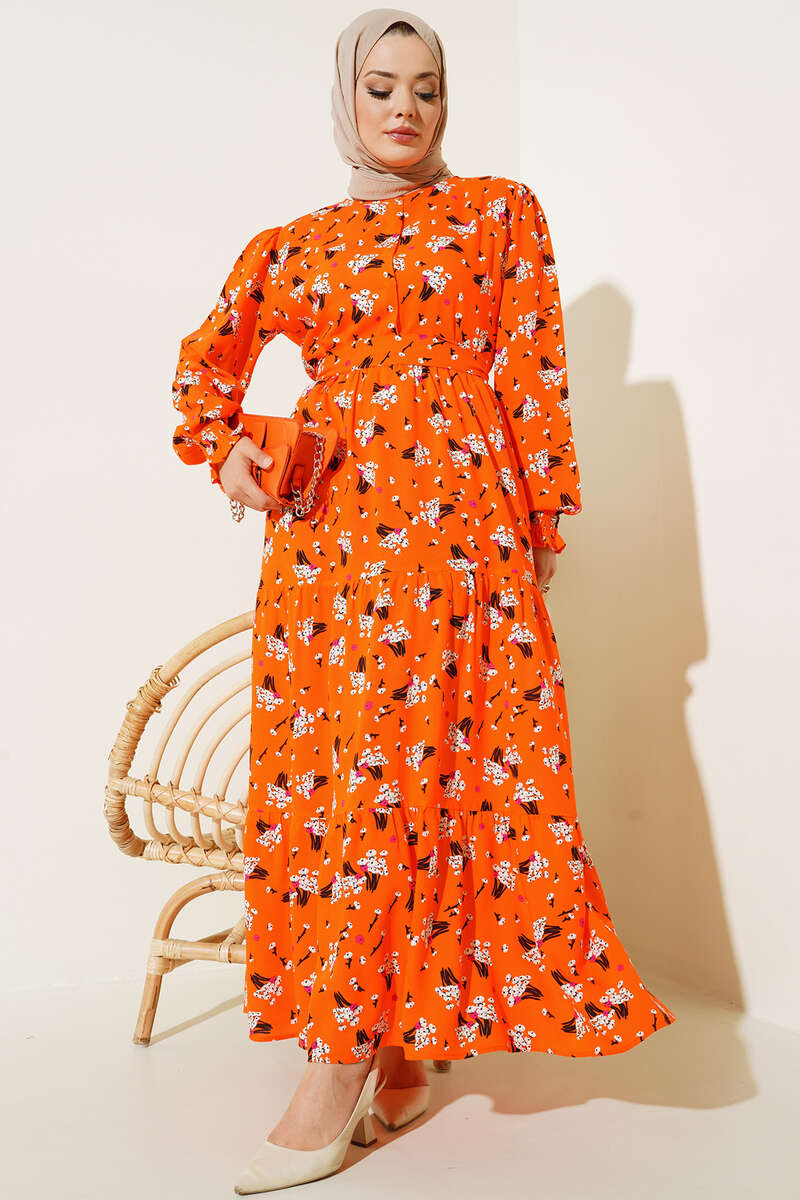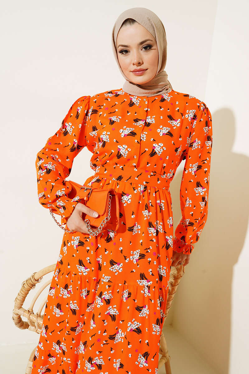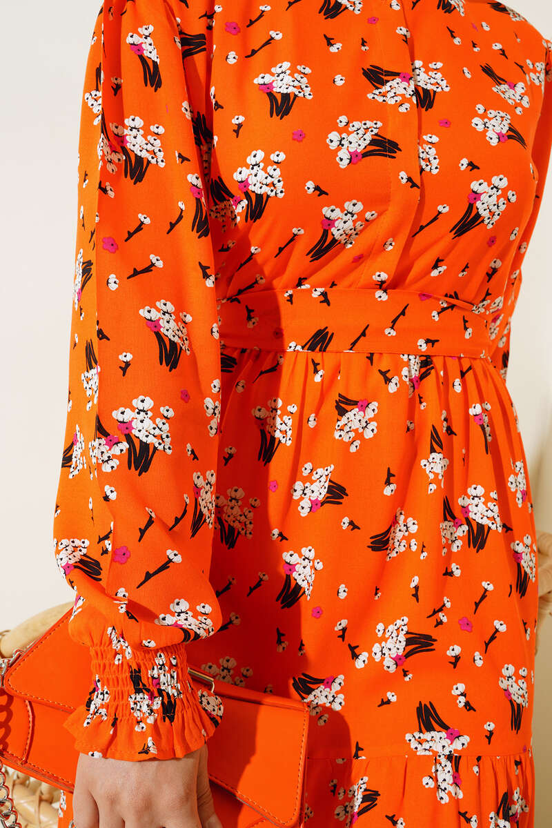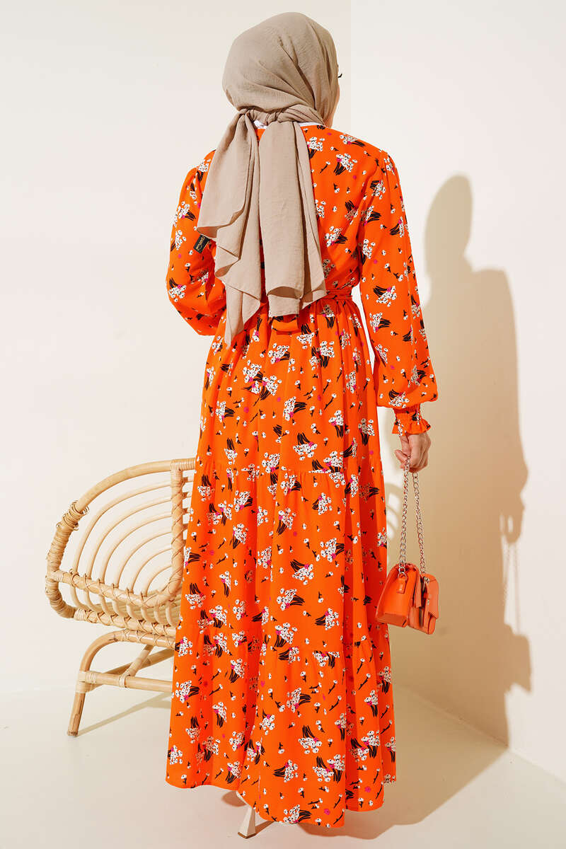 Demet Desenli Elbise Oranj