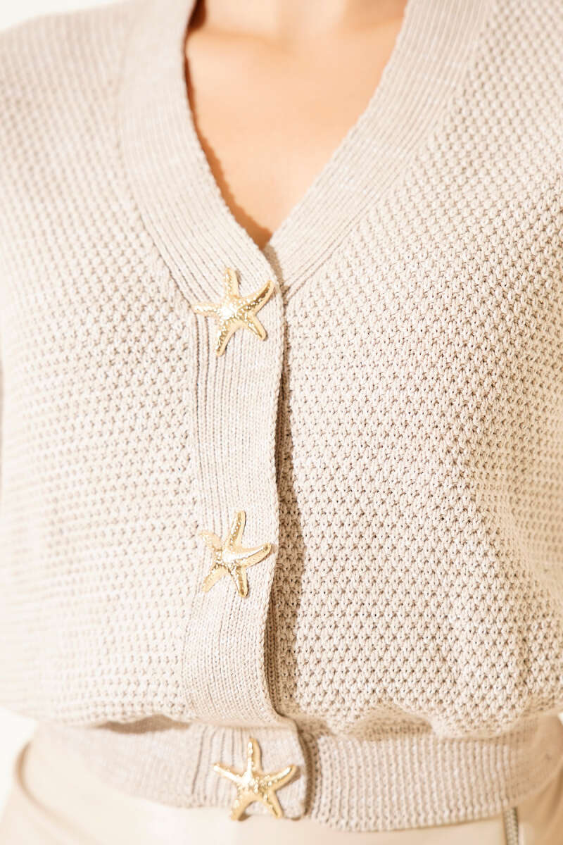 Bilek Düğmeli Fitilli Triko Tunik Lacivert