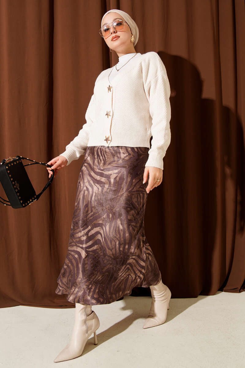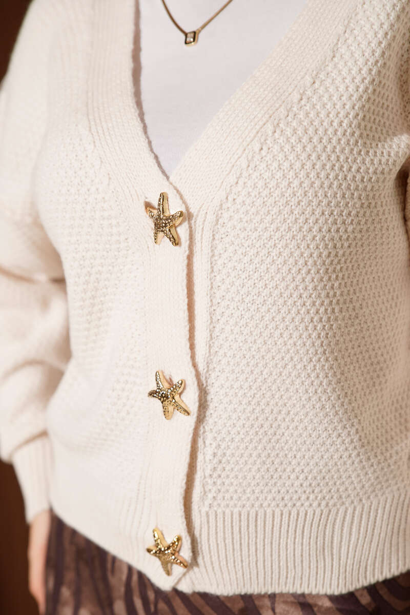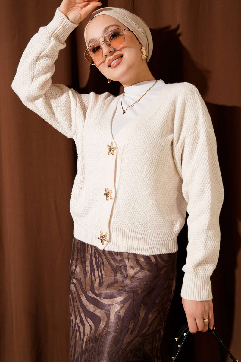 Deniz Yıldızı Düğmeli Triko Hırka Vizon