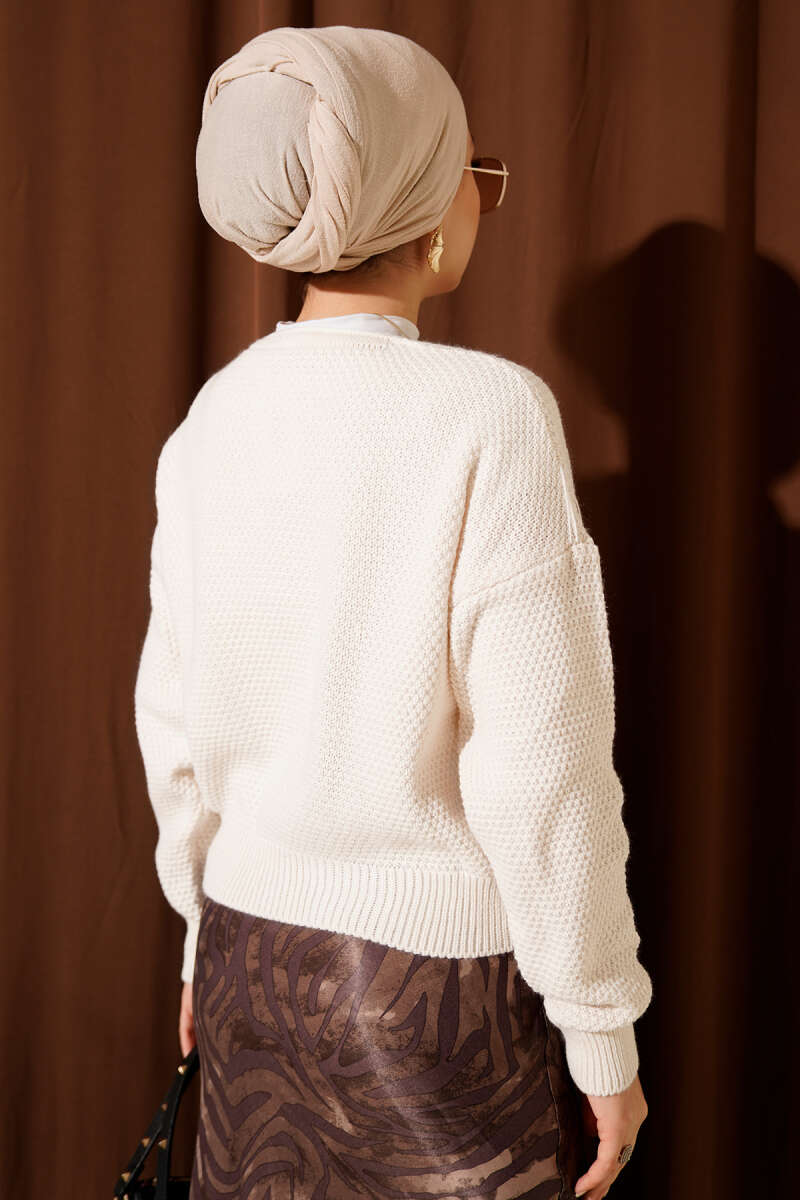 Bisiklet Yaka Örme Triko Erkek Kazak Ekru