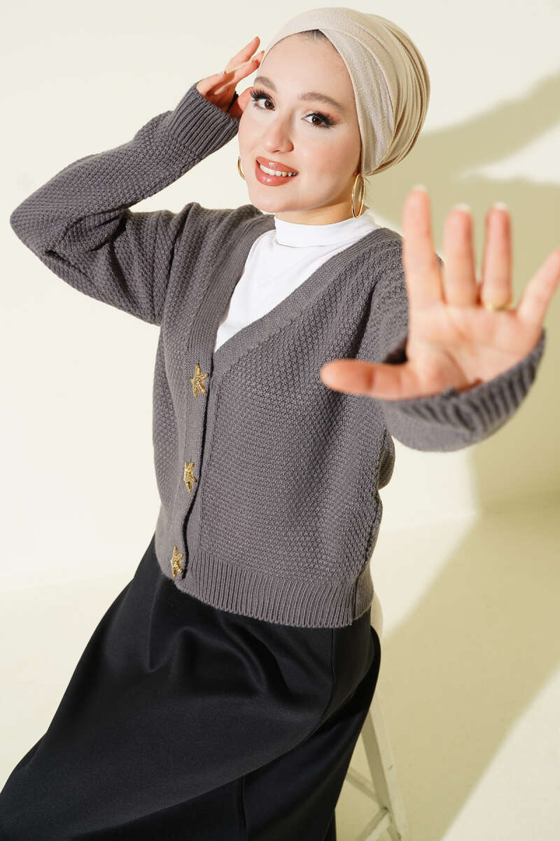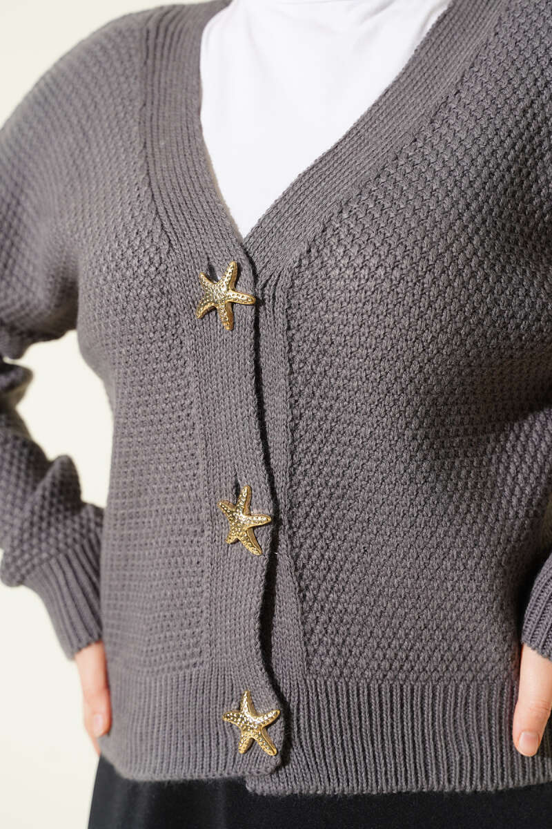 Deniz Yıldızı Düğmeli Triko Hırka Vizon