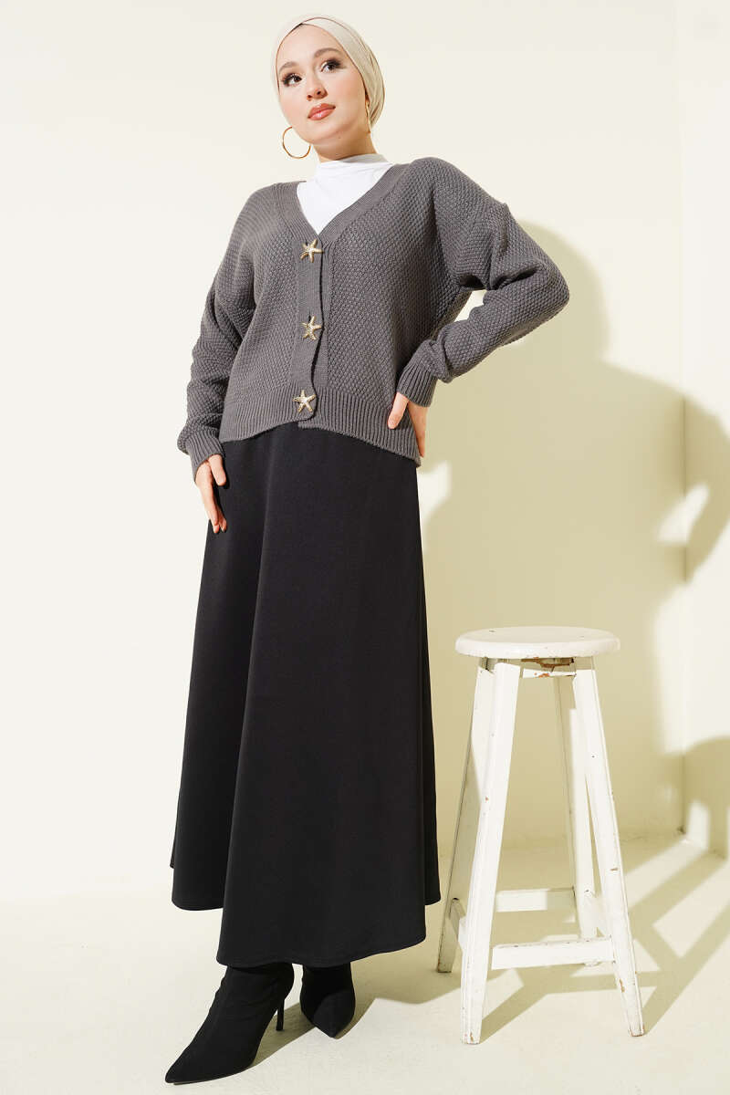 Deniz Yıldızı Düğmeli Triko Hırka Siyah