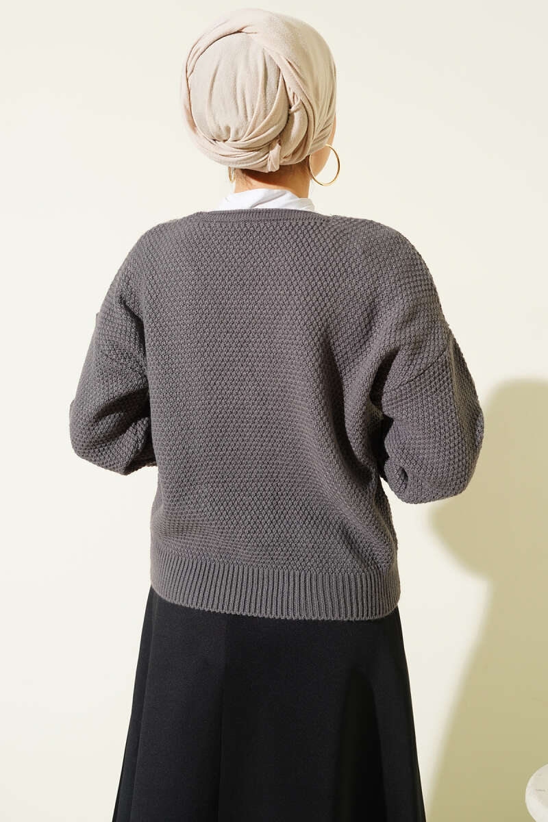 Çiçek Nakışlı Düğmeli Merserize Hırka Kahve