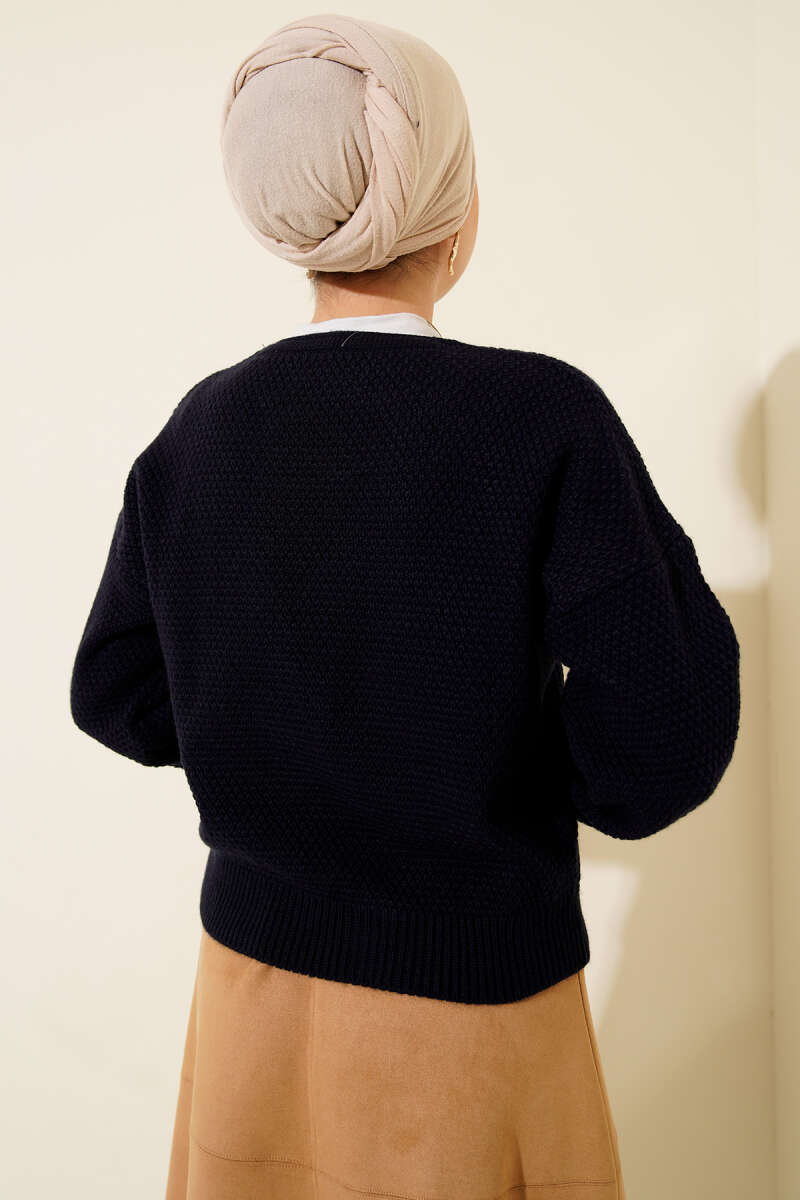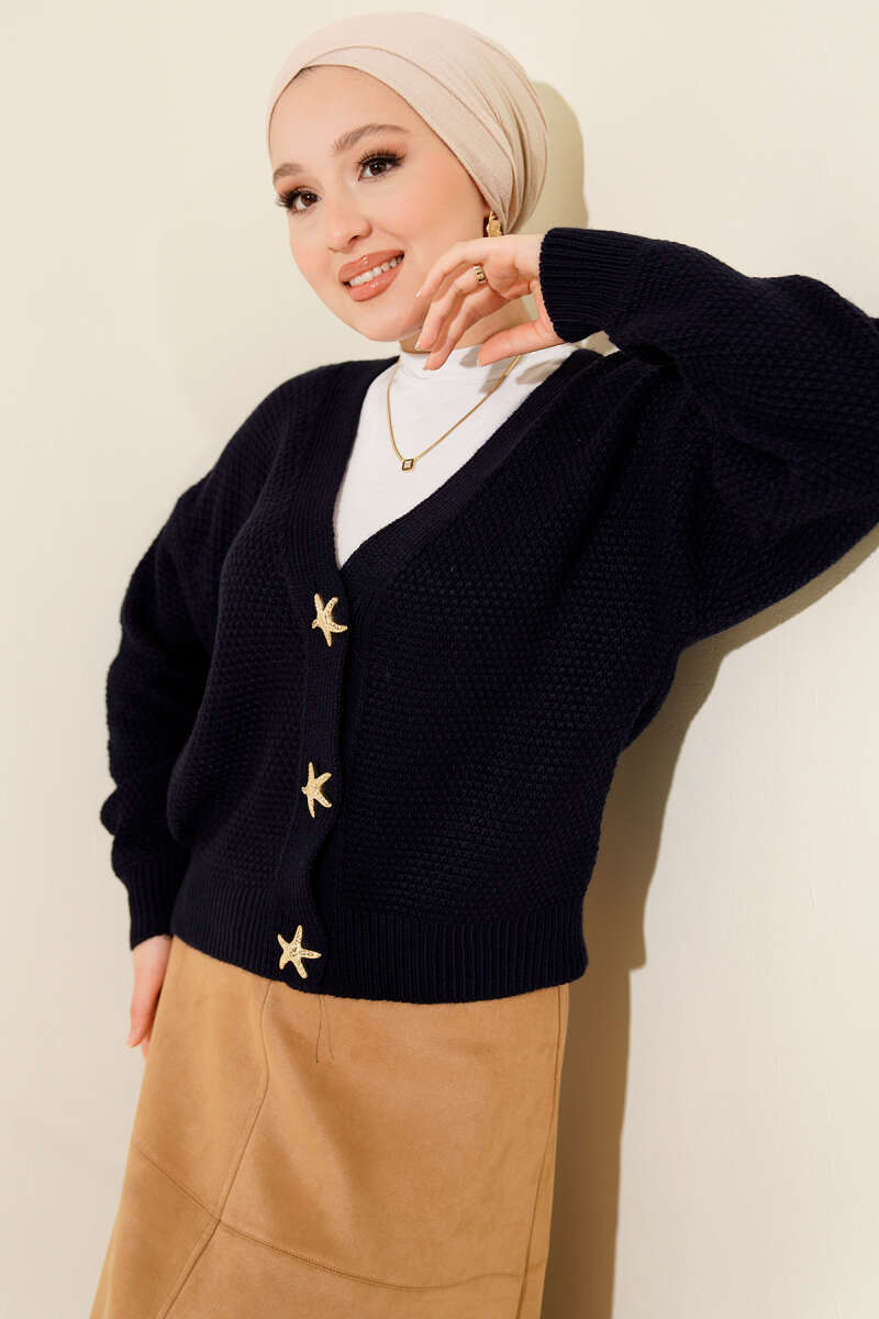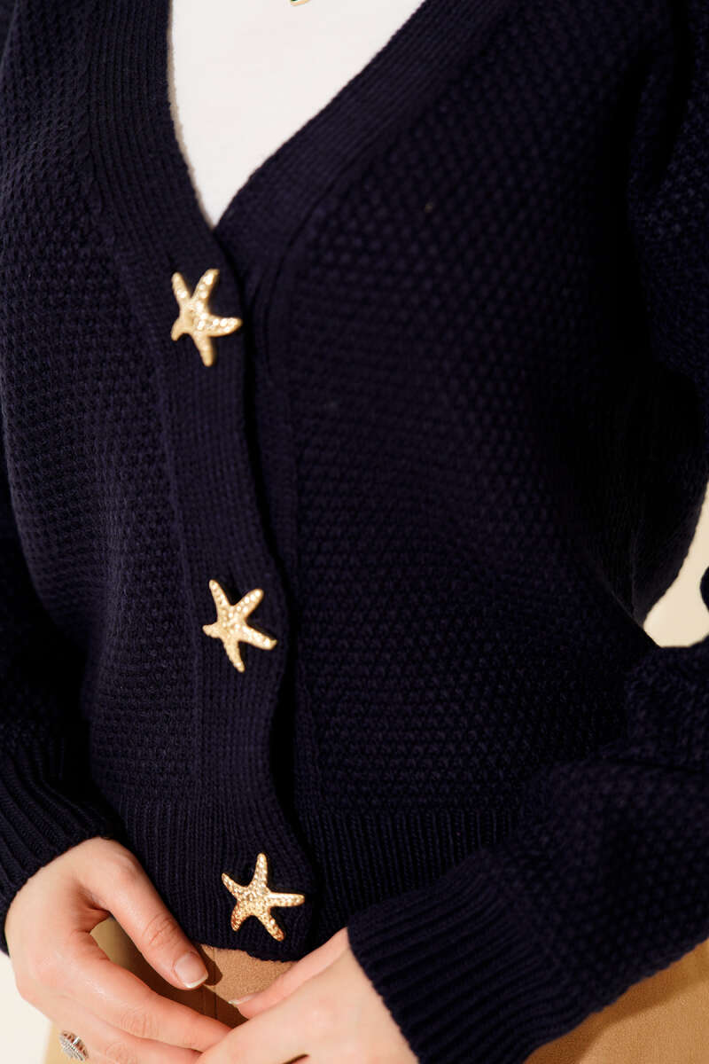Deniz Yıldızı Düğmeli Triko Hırka Siyah