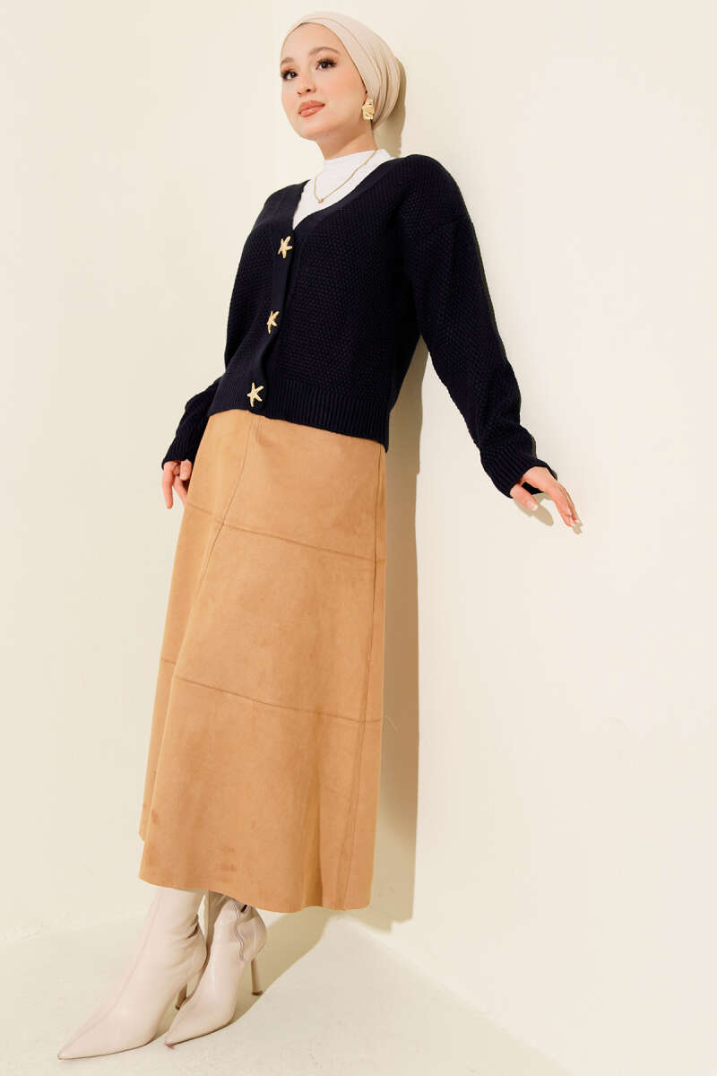Deniz Yıldızı Düğmeli Triko Hırka Vizon