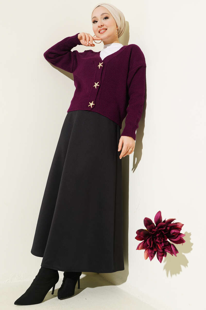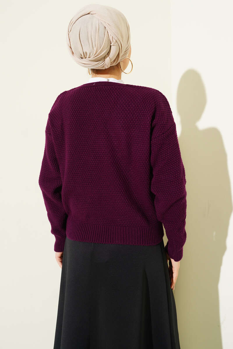 Beli Lastikli Sakallı Yumoş Hırka Mürdüm