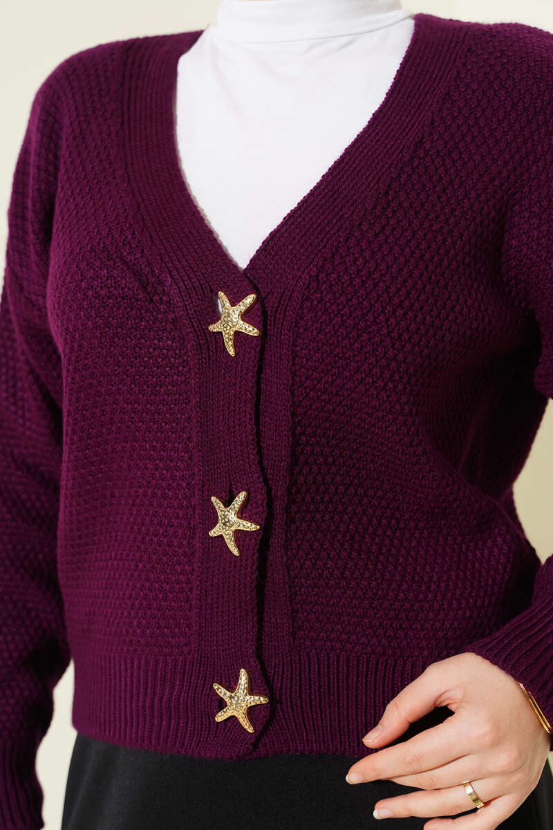 Deniz Yıldızı Düğmeli Triko Hırka Füme