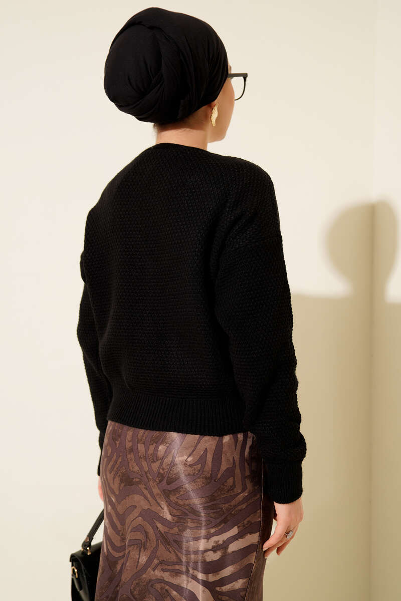 Bisiklet Yaka Örme Triko Erkek Kazak Siyah